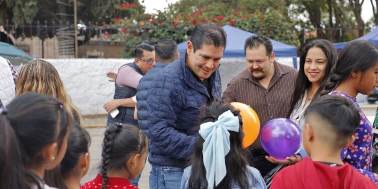 Ernesto Núñez Aguilar, dirigente estatal, encabezó la entrega de los regalos a los niños que se encuentran con la ilusión de la mágica noche en la que Melchor, Gaspar y Baltazar reparten alegría y regalos.