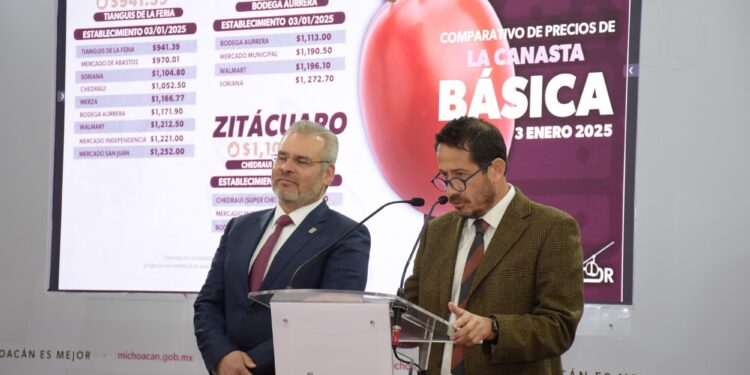 Méndez Fernández detalló que en Lázaro Cárdenas el costo más bajo fue en Soriana con mil 159 pesos y el más alto en Bodega Aurrera con mil 281 pesos. Además, para Apatzingán el costo más económico fue en Bodega Aurrera con mil 189 y más alto en el mercado municipal con mil 197 pesos.