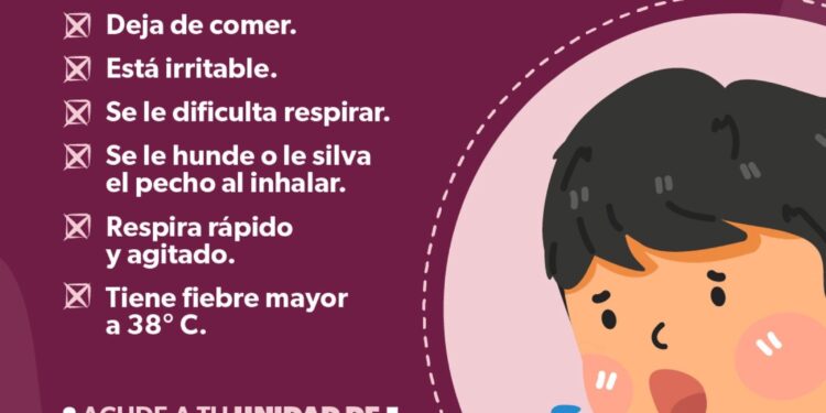 Morelia, Michoacán, 10 de enero de 2025.- Fiebre superior a los 38 grados, insuficiencia respiratoria, silbido en el pecho y hundimiento al respirar, son los signos de alarma de la neumonía, enfermedad que si no se trata a tiempo con el médico se puede agravar y ocasionar la muerte.
