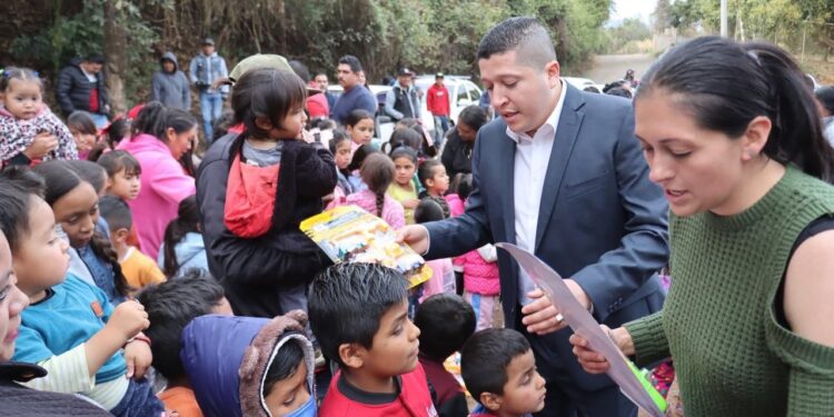 El diputado del Grupo Parlamentario del Partido del Trabajo (GPPT) recorrió también distintas localidades del municipio de Acuitzio, acompañado de la diputada federal, Vanessa López Carrillo, en donde junto a Melchor, Gaspar y Baltazar entregaron juguetes a la niñez de la zona.