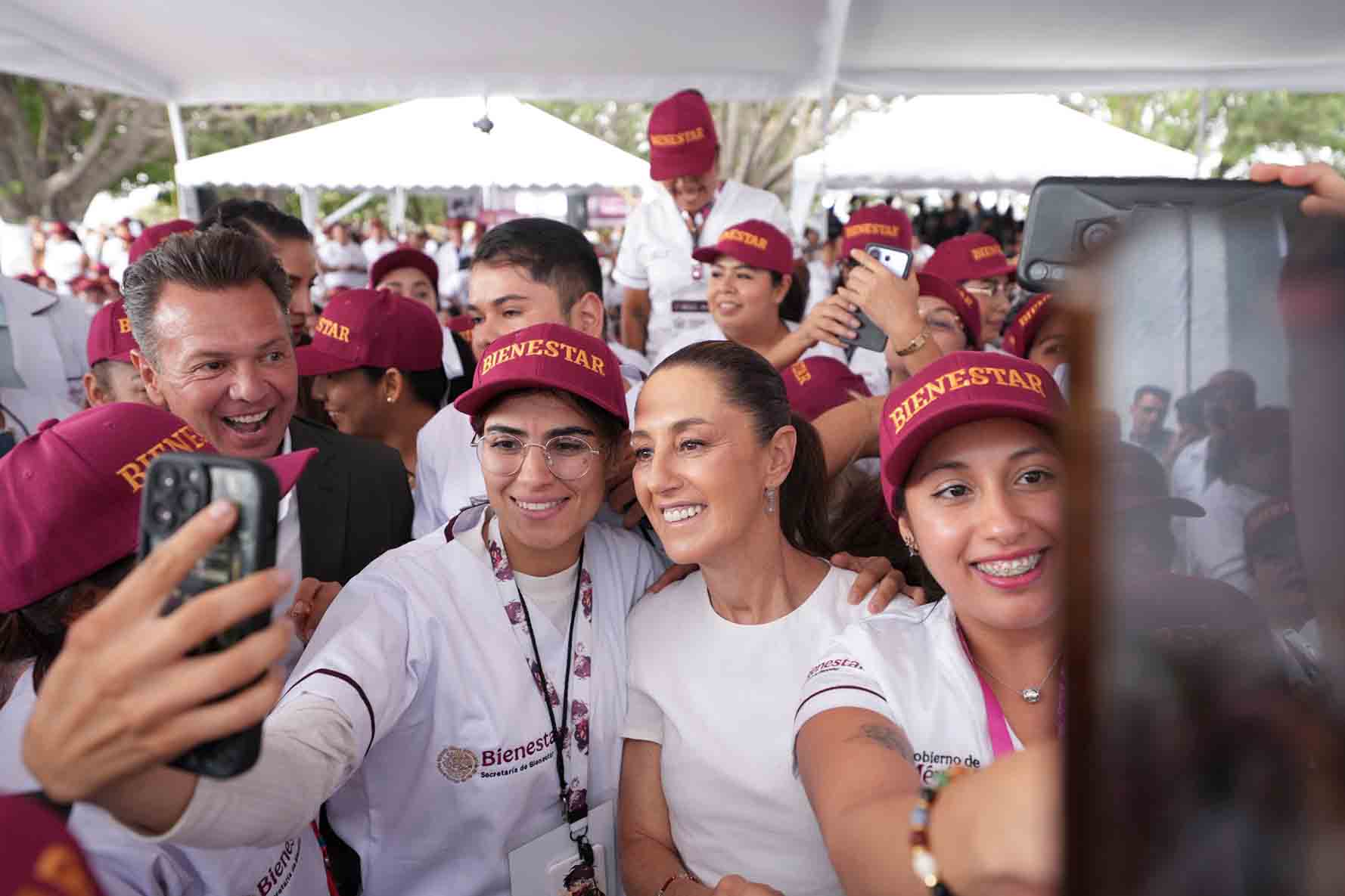 En esta Asamblea estuvieron con la Presidenta de México, el secretario de Salud, David Kershenobich Stalnikowitz; la secretaria de Bienestar, Ariadna Montiel Reyes; el director general del Instituto Mexicano del Seguro Social (IMSS), Zoé Robledo Aburto; el secretario técnico de la Presidencia de la República y coordinador general de Programas para el Bienestar, Carlos Torres Rosas; el subsecretario de Bienestar, Jesús Salvador Valencia Guzmán; y la Presidenta Municipal de San Pedro Tlaquepaque, Laura Imelda Pérez Segura.