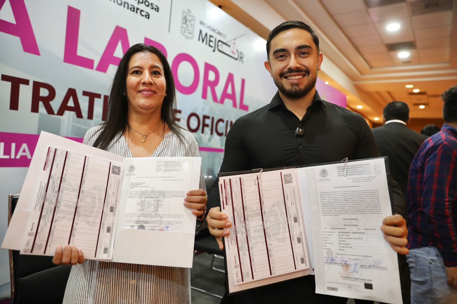 Por su parte, la secretaria de Educación, Gabriela Molina, informó que tan solo este año se están entregando 8 mil documentos, entre Formatos Únicos de Personal, órdenes de adscripción y reubicaciones de pago, lo que da orden al sector educativo y pone fin a actos de corrupción, al hacerlo de manera directa y sin intermediarios.