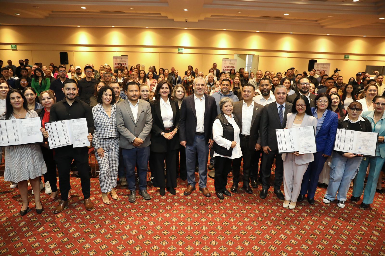 Morelia, Michoacán, 18 de junio de 2025.- La justicia laboral avanza para los docentes michoacanos con la regularización de cambios de centros de trabajo y la entrega de Formatos Únicos de Personal y órdenes de adscripción para beneficio de mil 960 trabajadores de la educación que entregó el gobernador Alfredo Ramírez Bedolla.