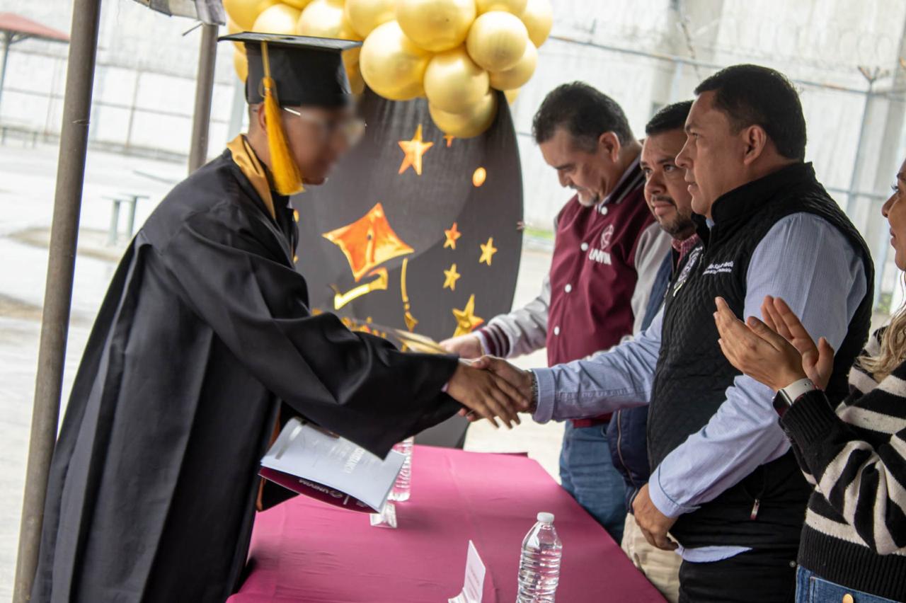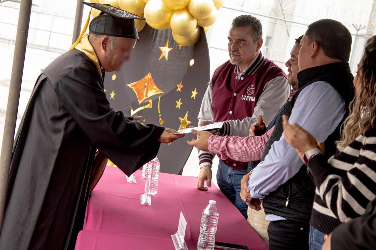 Acompañado por el rector de la Univim, David Mendoza Armas, el coordinador del Sistema Penitenciario, Elías Sánchez García, destacó que el trabajo conjunto entre ambas instituciones fue parte fundamental para que los graduados contaran con las herramientas para convertirse en la primera generación que culmina esta carrera que los dotó de los conocimientos necesarios para, incluso, trabajar en su propia defensa.