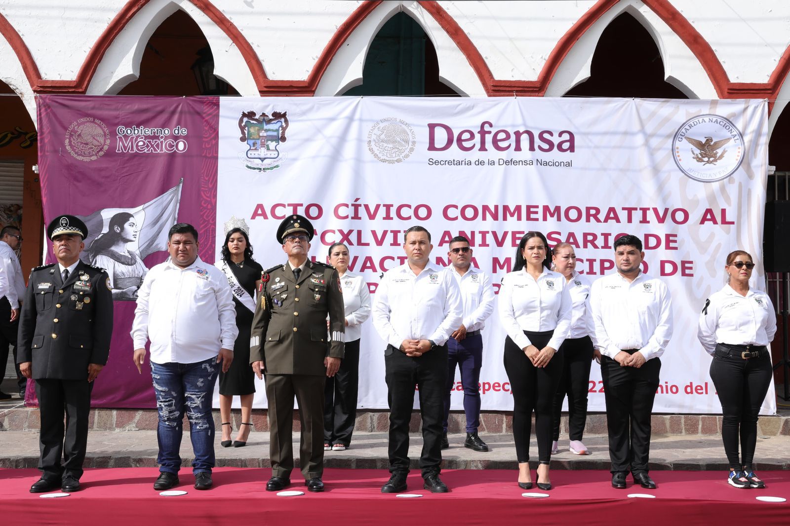 Tepalcatepec, Michoacán.- En un ambiente de civilidad y orden, se llevó a cabo el desfile cívico-militar conmemorativo por el 148 Aniversario de la elevación de Tepalcatepec a municipio, como parte de los eventos conmemorativos para destacar esta fecha histórica