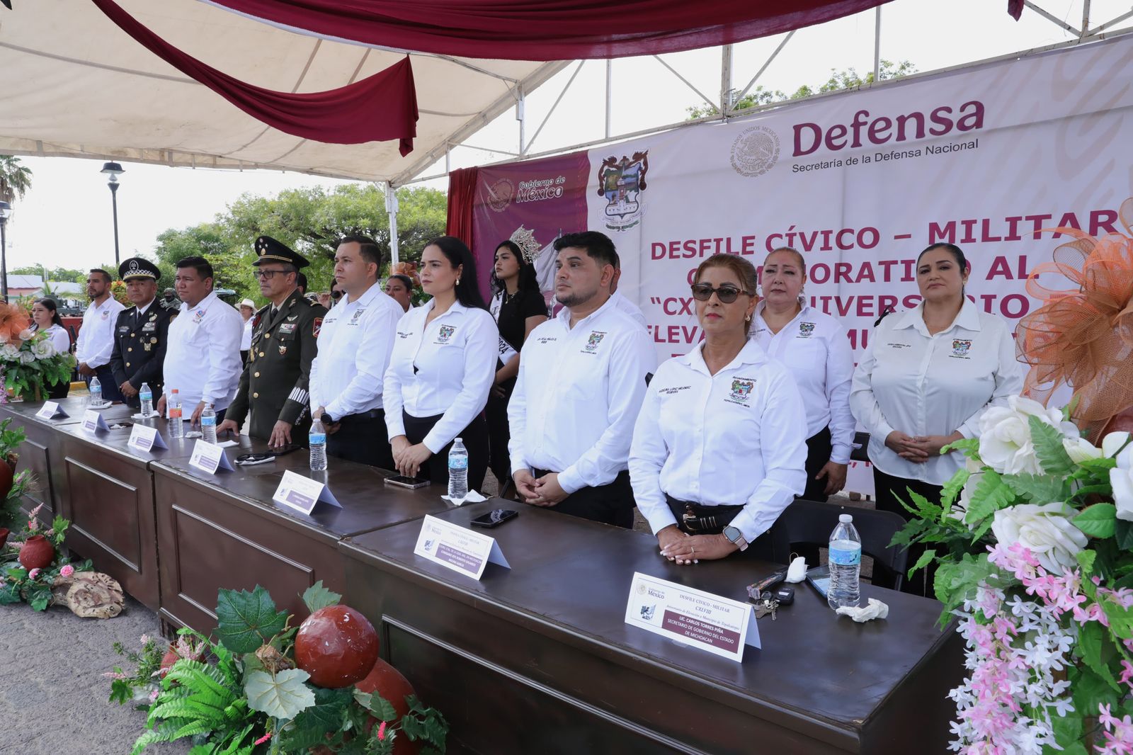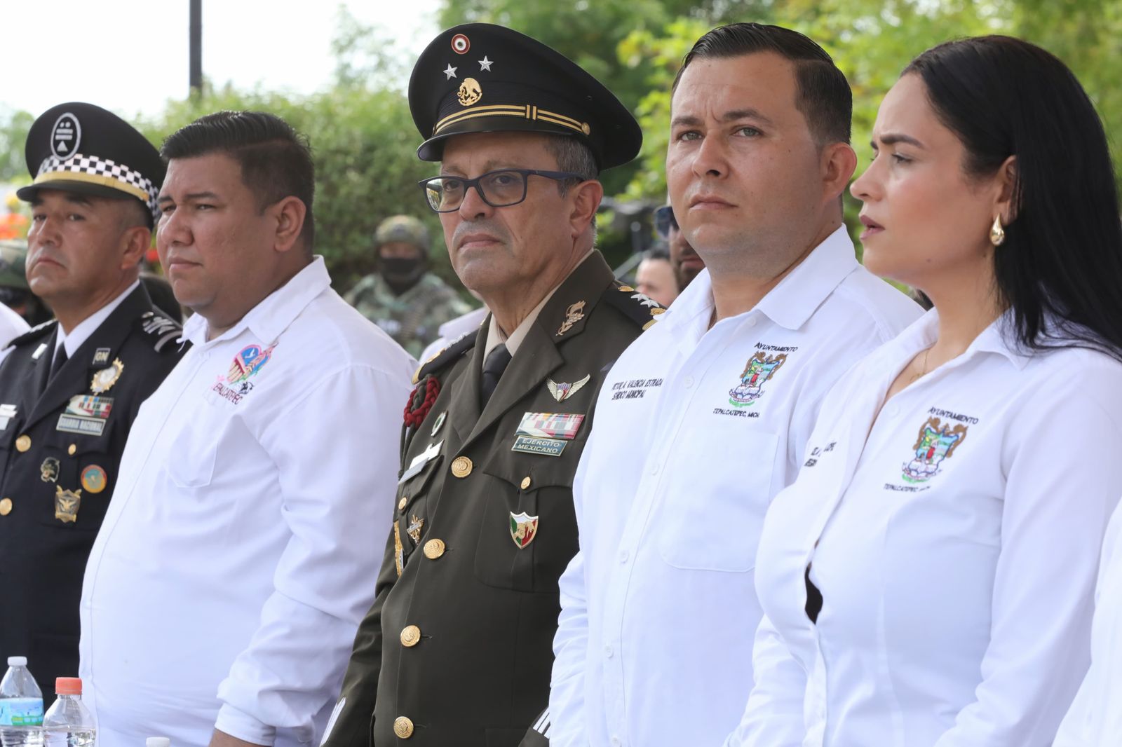 Las actividades fueron encabezadas por el general José Francisco Terán Valle, comandante de la 43 Zona Militar de Apatzingán, e iniciaron con un acto cívico en el Jardín San Francisco de Asís, donde se rindió un homenaje póstumo a la presidenta municipal, Martha Laura Mendoza Mendoza y a su esposo, destacando su legado de servicio y compromiso con la comunidad.