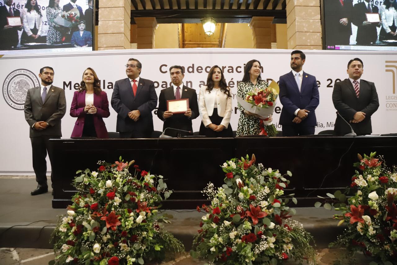 Por su parte y a nombre de la 76 Legislatura, el diputado Antonio Carreño Sosa, subrayó que, con la entrega de esta condecoración, el Poder Legislativo rinde tributo a la educación pública, al conocimiento como motor de cambio, y a los hombres y mujeres que, desde las aulas, los laboratorios, los talleres y las instituciones, hacen posible que Michoacán avance y se transforme.