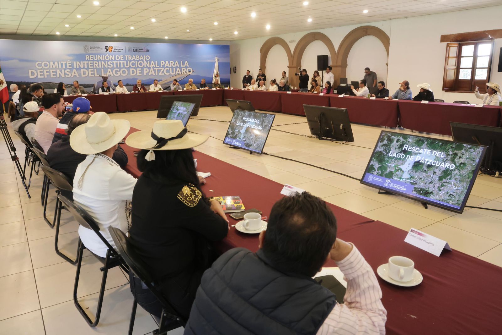 Pátzcuaro, Michoacán.- Al sostener una reunión de evaluación y seguimiento sobre las acciones de preservación, conservación y rescate del lago de Pátzcuaro, el gobernador Alfredo Ramírez Bedolla señaló que la estrategia avanza de manera integral, con la participación de las instituciones de la administración estatal y de los habitantes de comunidades ribereñas.