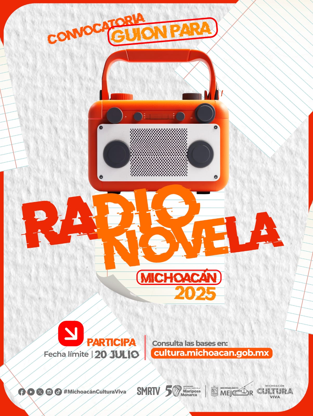 La Secretaría de Cultura de Michoacán (Secum) recuerda a los interesados que la convocatoria para la creación de una radionovela original aún está abierta. El plazo para participar cierra el próximo 20 de julio a las 23:59 horas.
