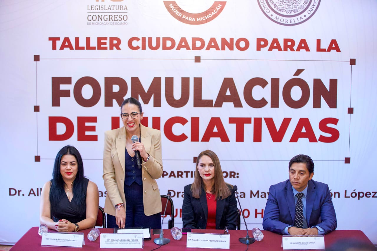 Al dar la bienvenida en el Taller Ciudadano para la Formulación de Iniciativas, Giulianna Bugarini Torres reconoció la importancia de dotar a los michoacanos de las herramientas que les permitan acceder a una verdadera participación ciudadana, “para que puedan llevar su voz, exponer sus demandas colectivas, para que las y los diputados puedan abrazar sus iniciativas”.