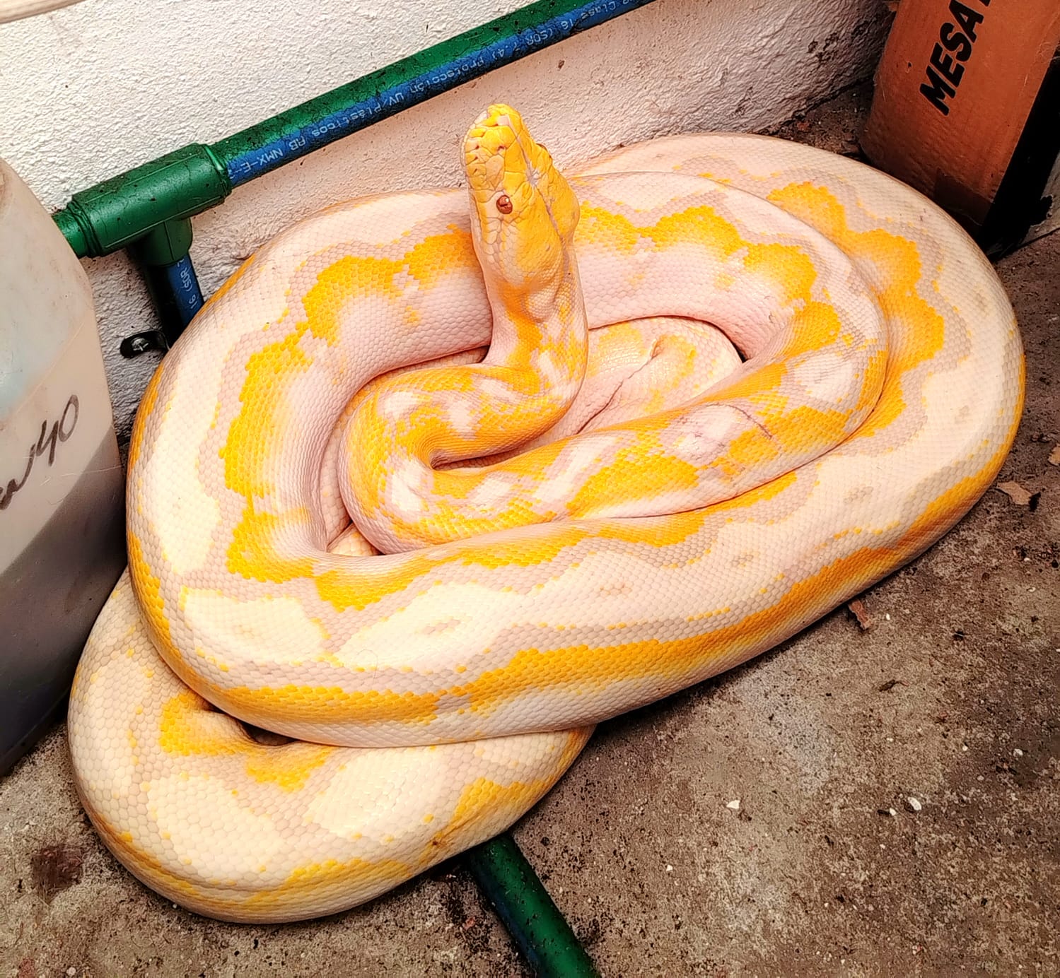 Se trata de un ejemplar adulto de la especie Python bivittatus (Pitón Burmes), de 3 metros de longitud, el cual no presentaba lesiones.