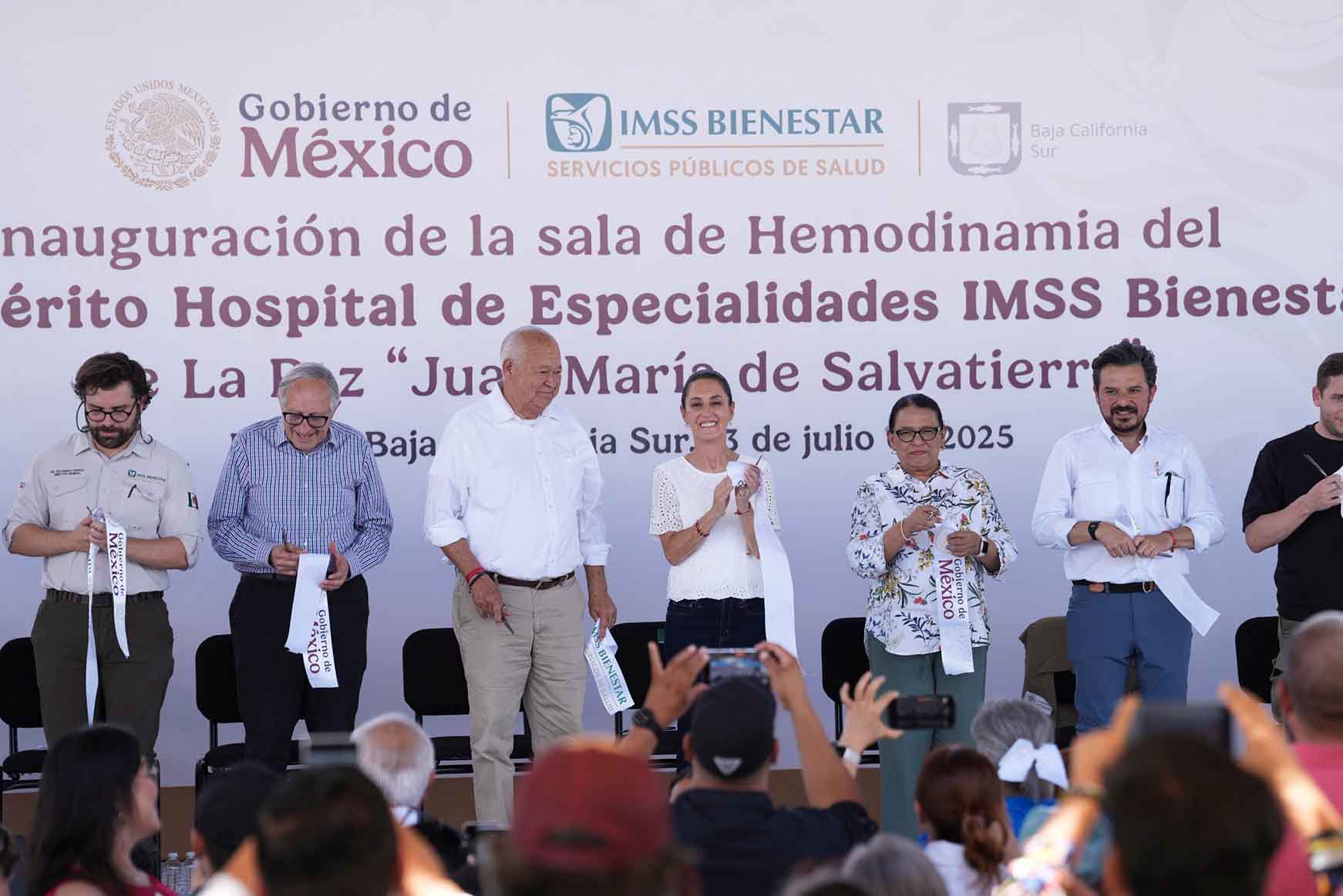 La Paz, Baja California Sur.- Desde La Paz, Baja California Sur, la Presidenta Claudia Sheinbaum Pardo encabezó la inauguración de una nueva sala de hemodinamia en el Hospital de Especialidades IMSS Bienestar “Juan María de Salvatierra” y anunció una inversión adicional de 300 millones de pesos (mdp) para fortalecer a la institución en esta entidad.