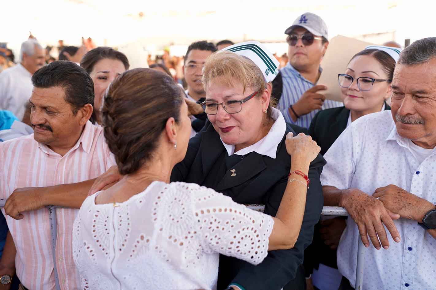 La Jefa del Poder Ejecutivo anunció diferentes acciones del Gobierno de México para Baja California Sur, entre las que destacó la construcción de la Presa El Novillo para mejorar el abastecimiento de agua potable; la compra de autobuses para el nuevo sistema de transporte público; y la rehabilitación de la carretera Transpeninsular, también llamada Benito Juárez García.