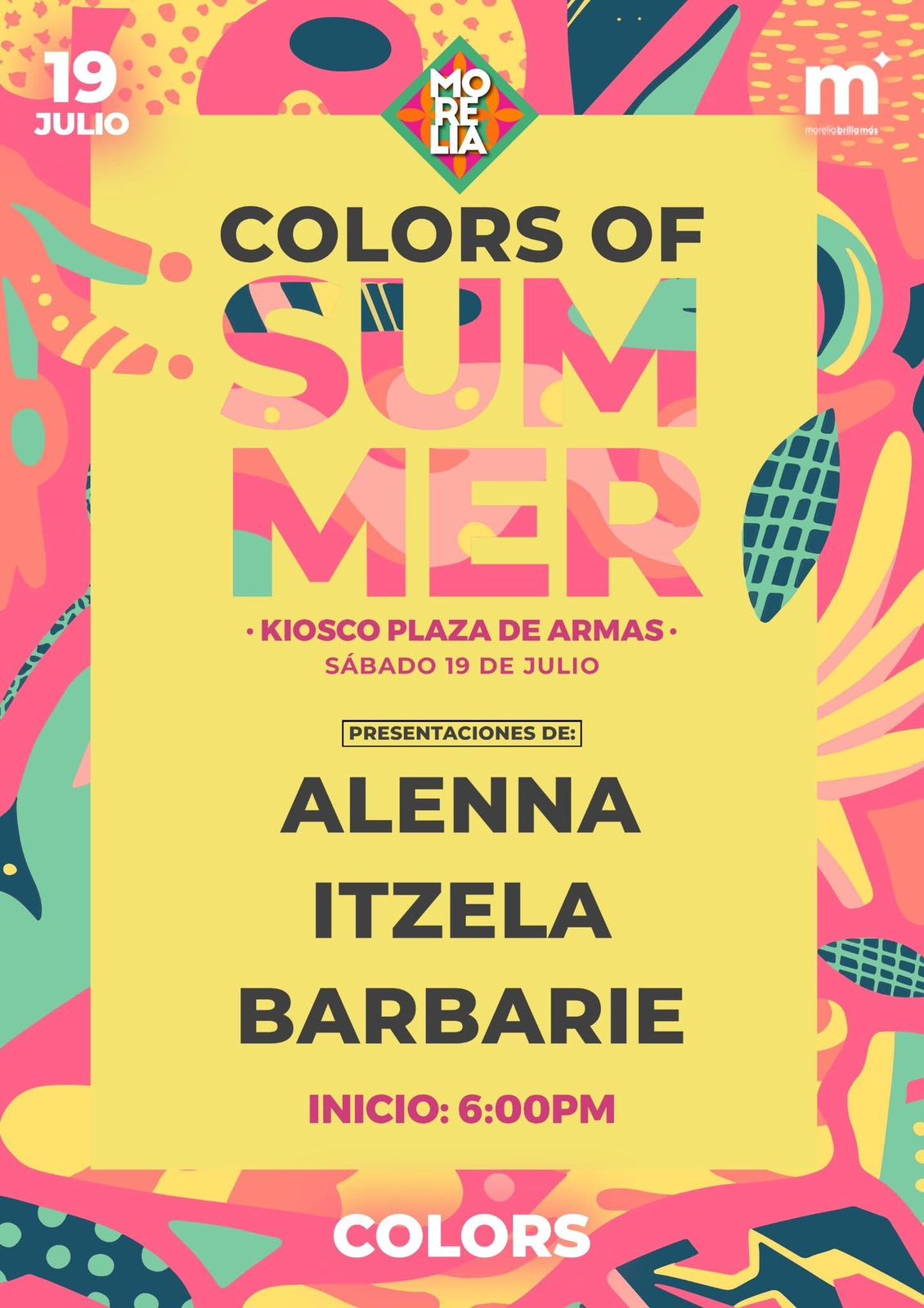 “Color of Summer” forma parte de la agenda cultural y turística que impulsa el Ayuntamiento de Morelia para activar los espacios públicos más representativos de la ciudad, ofreciendo actividades gratuitas, tanto para visitantes como para morelianas y morelianos.