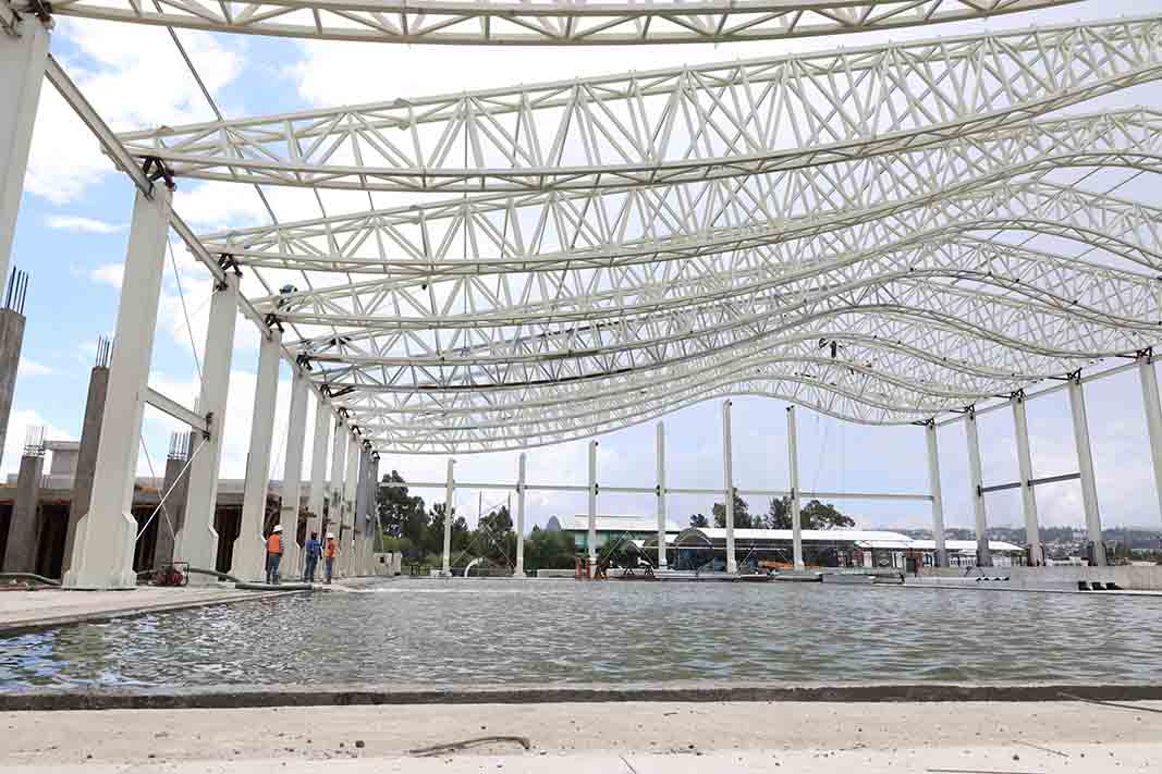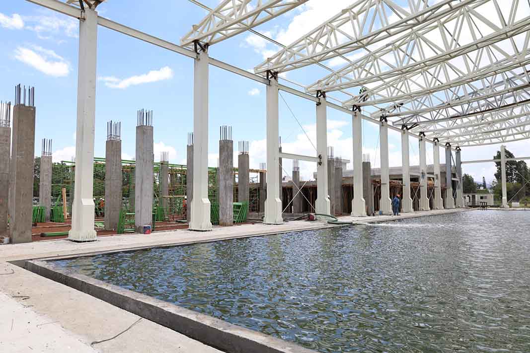 De acuerdo con el coordinador de Planeación, Infraestructura y Fortalecimiento Universitario, Jaime Camacho Moreno, la construcción de la alberca Olímpica tiene un avance general del 70 por ciento.