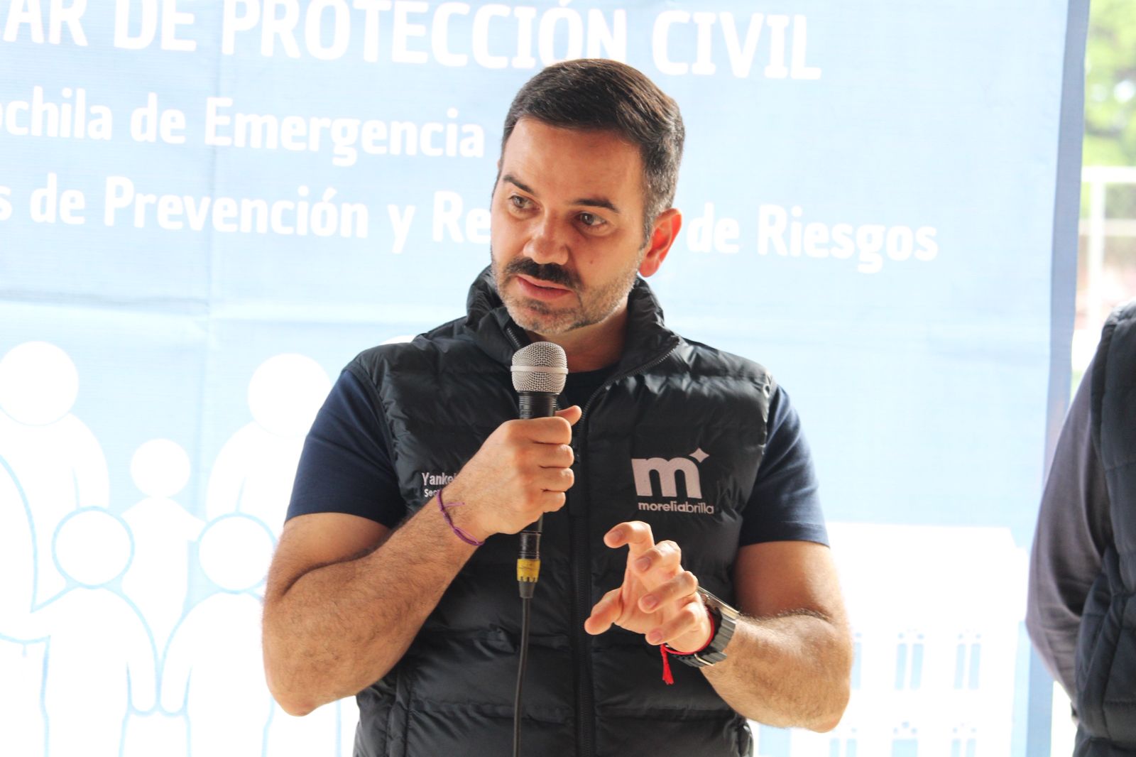 Este jueves, el secretario del Ayuntamiento de Morelia, Yankel Benítez Silva, en coordinación con la Dirección de Protección Civil y Bomberos Municipal, encabezó el evento “Plan Familiar de Protección Civil: Mochila de Emergencia y Comité Comunitario de Prevención y Reducción de Riesgos”, que tuvo lugar en el atrio de la Parroquia San Luis Gonzaga, en la colonia Jaujilla.
