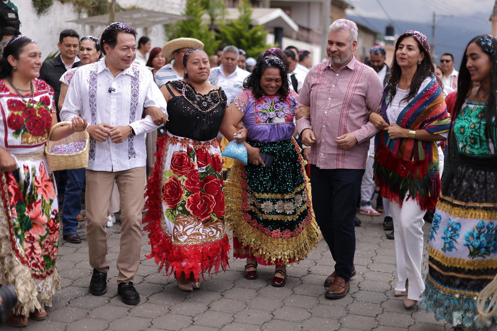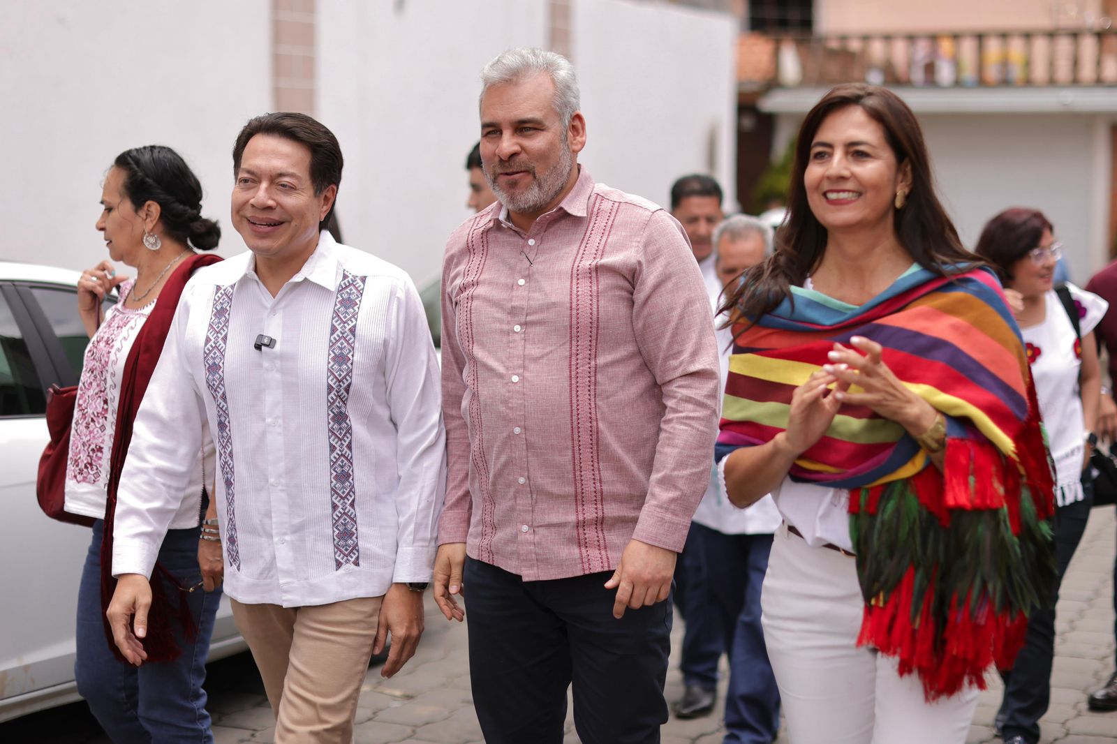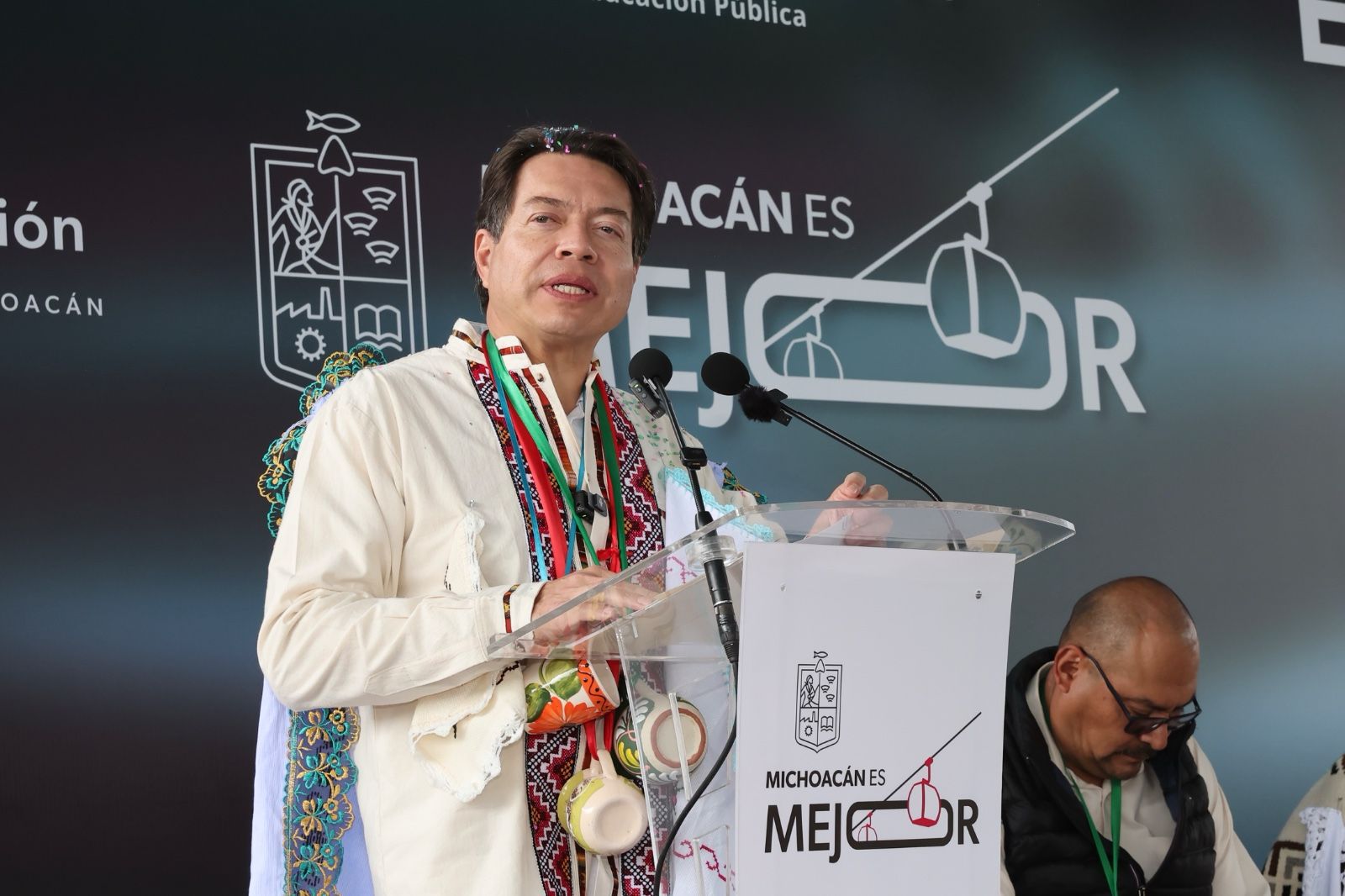 Acompañaron al gobernador la secretaria de Educación, Gabriela Molina Aguilar; el director de Educación Indígena de la SEE, José Alfredo Reyes Martínez; la directora general de Universidades Interculturales de la SEP, Elvira Méndez Bautista; el presidente del concejo de Cheranástico, Salvador Arzola Lemus; el consejero de Educación, Cultura y Deporte de la comunidad, Miguel López Campos; así como directivos, docentes, y estudiantes de escuelas de Paracho.