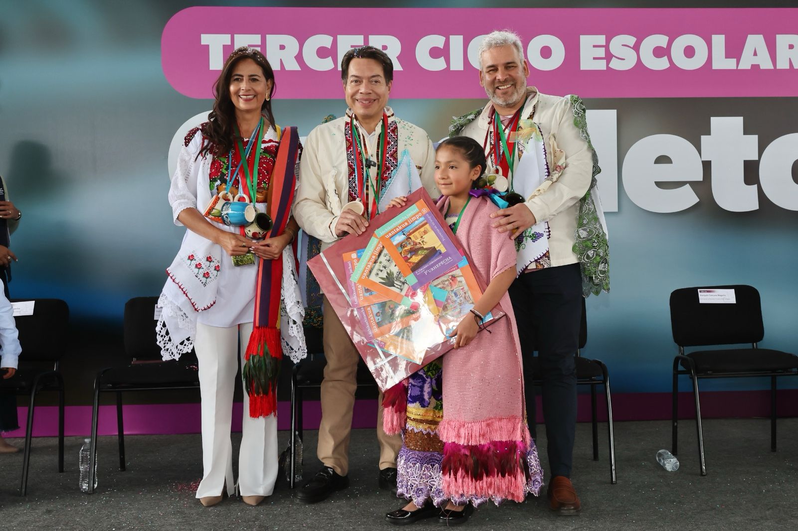 Paracho, Michoacán,-El gobernador Alfredo Ramírez Bedolla y el secretario de Educación Pública, Mario Delgado Carrillo, iniciaron en Cheranástico, comunidad indígena del municipio de Paracho, la entrega de más de 6 millones de libros de texto gratuitos del ciclo escolar 2025-2026, en beneficio de más de 947 mil estudiantes de educación básica de Michoacán.