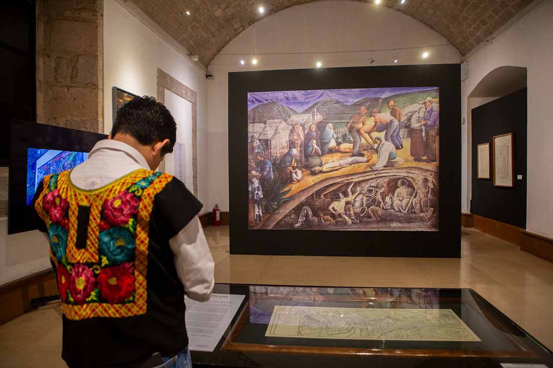 La exposición inaugurada reúne más de 100 piezas que recorren su amplia trayectoria y revelan su fuerza expresiva y simbólica. Alumno de Frida Kahlo y colaborador de Diego Rivera y José Clemente Orozco, Estrada es heredero del espíritu purépecha y una de las voces más vigorosas de la Escuela Mexicana de Pintura. Su obra entrelaza surrealismo, identidad, belleza y lucha social con una raíz profundamente humanista.