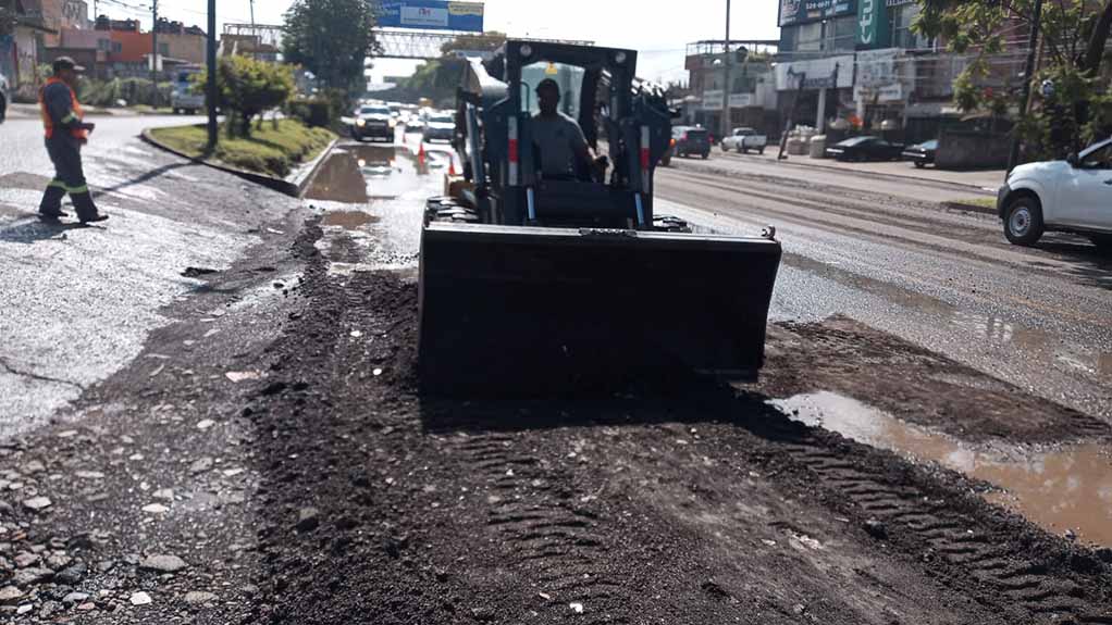 Con apoyo de maquinaria pesada, los trabajadores municipales liberan la vialidad para permitir el paso seguro de los automovilistas que circulan por esta zona.