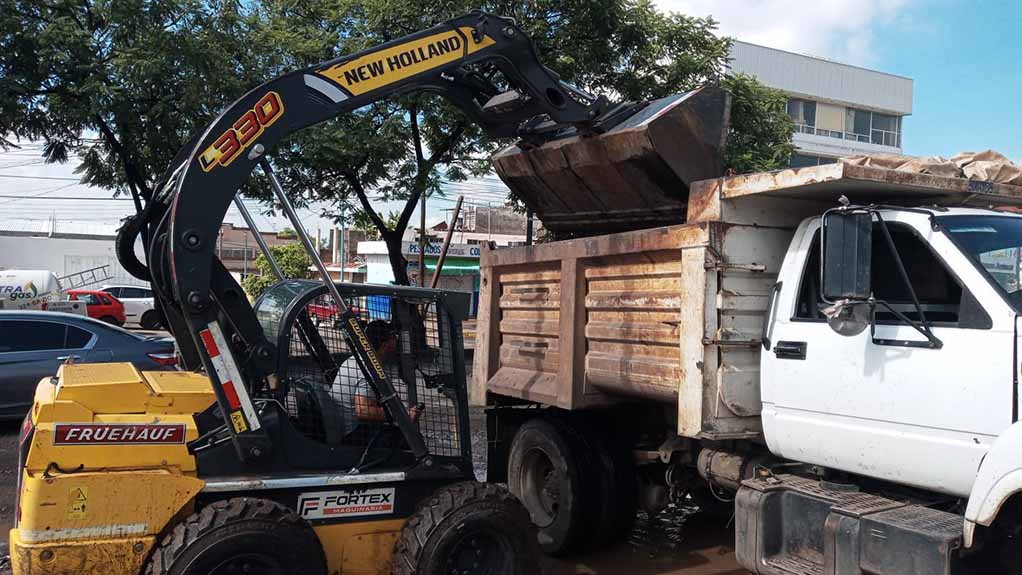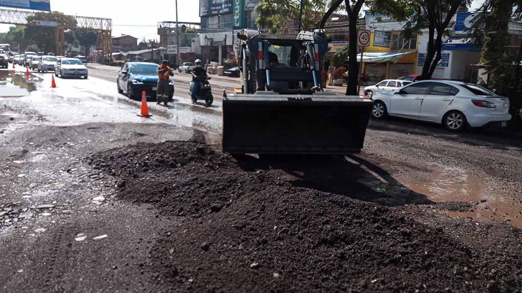 Brigadas de la Secretaría de Servicios Públicos, trabajan en el retiro de tierra que fue arrastrada durante las lluvias, en las laterales de la salida a Quiroga, sobre la avenida Madero.