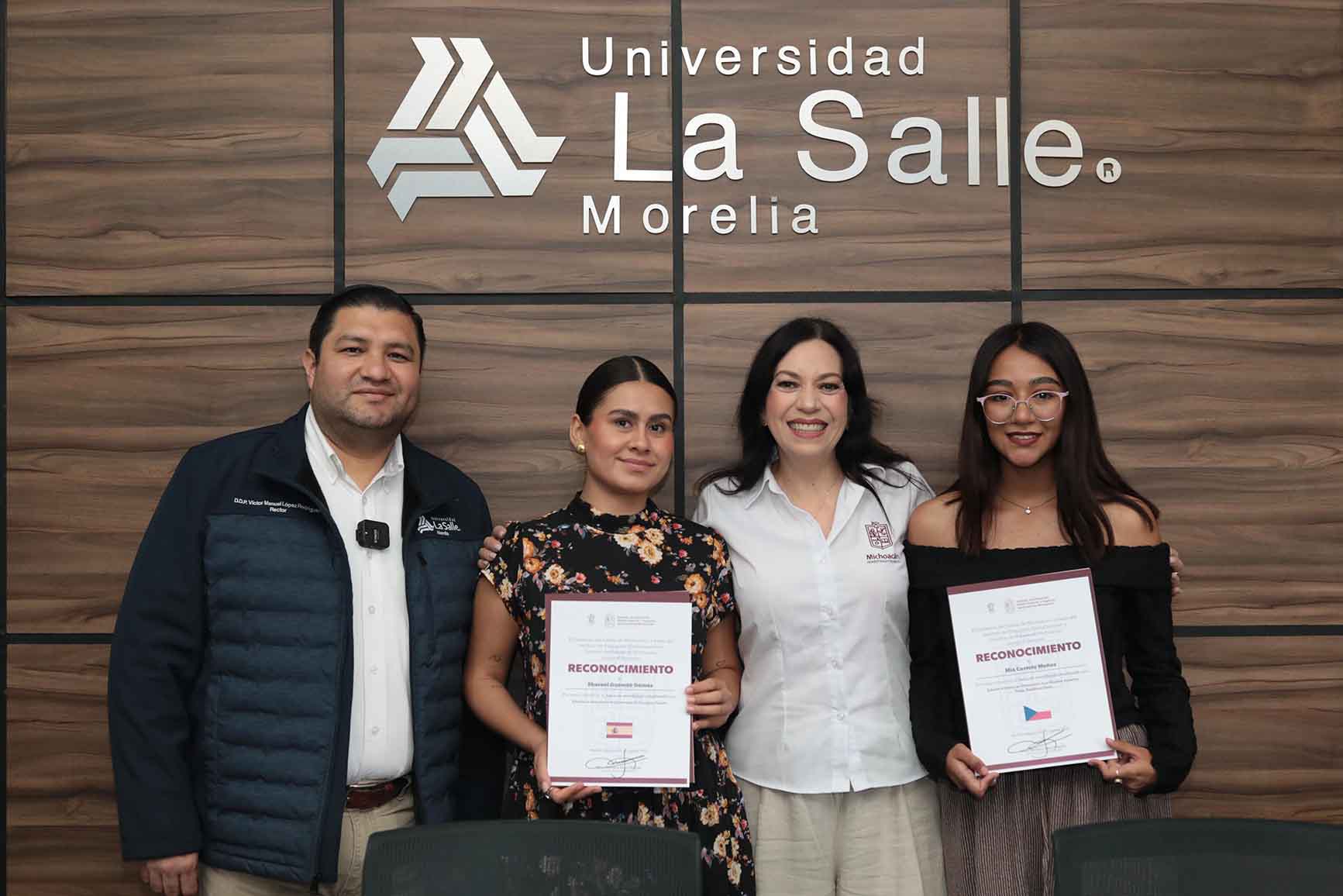 En un evento celebrado esta mañana, se entregaron dos nuevas becas a estudiantes de la Universidad La Salle Morelia; una de ellas realizará un intercambio académico en España durante un semestre, mientras que el otro beneficiario viajará a la República Checa para cursar estudios de idiomas.