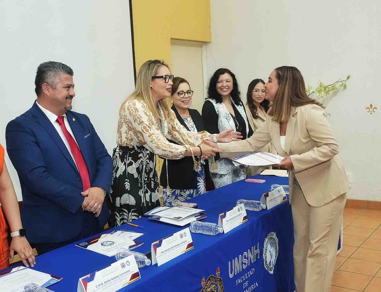“Ustedes forman ese elemento diferenciador, es decir, son personas más competitivas porque han seguido preparándose, pero esa competitividad no solamente debe ser técnica, sino este humanismo del que hablamos en la Universidad Michoacana debe dar ejemplo, debe seguirse mostrando ante las personas que ustedes van a atender, con quienes son ese contacto que da fe, que da esperanza y un buen trato”.