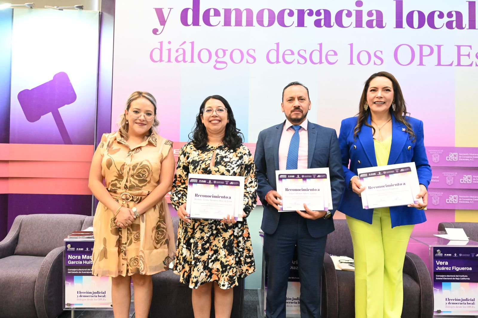 En el coloquio también participaron consejeras y consejeros de distintos organismos públicos locales electorales: Edgar Alfonso Aidave Aguilar, del Instituto Tlaxcalteca de Elecciones; Vera Juárez Figueroa, del Instituto Estatal Electoral de Baja California; Hernán González Sala, del Instituto Electoral y de Participación Ciudadana de Tabasco; y Nora Maricela García Huitrón, del Instituto Electoral de Guanajuato.