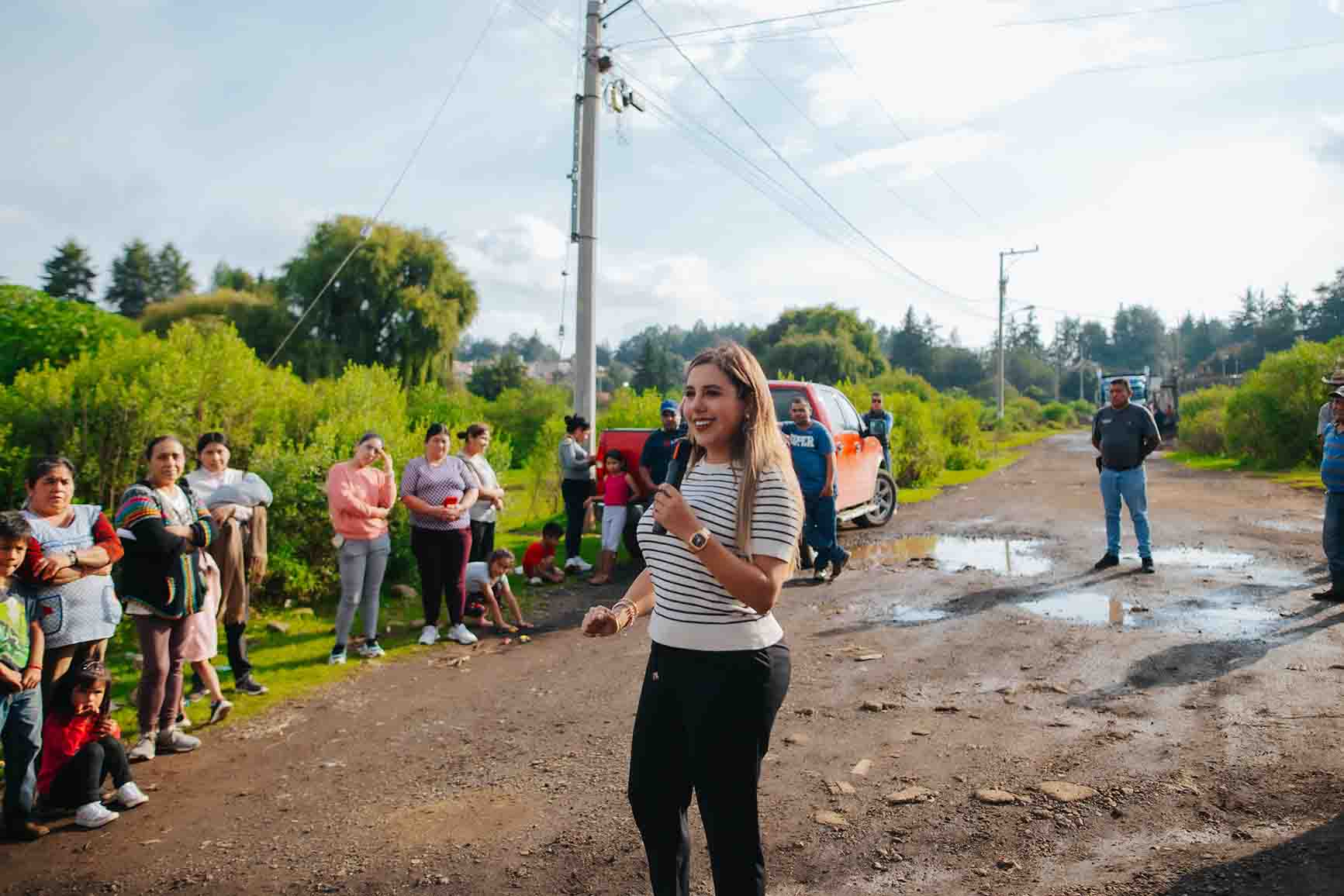 Durante el recorrido, la alcaldesa convivió de manera cercana con los vecinos, quienes compartieron sus necesidades ante la acumulación de agua e inundaciones. Como respuesta, se llevó a cabo la colocación de balastre para emparejar caminos y facilitar el acceso a la comunidad, además realizó la distribución de canastas básicas.