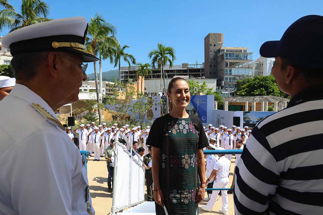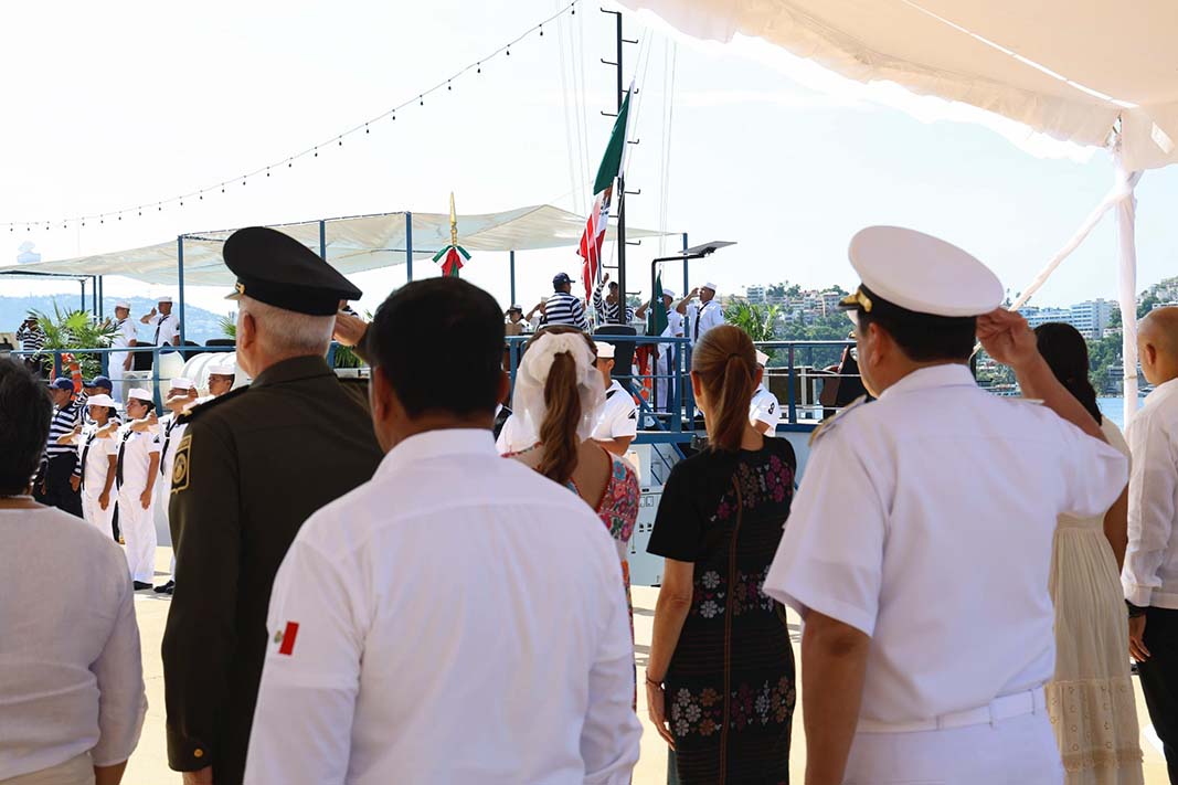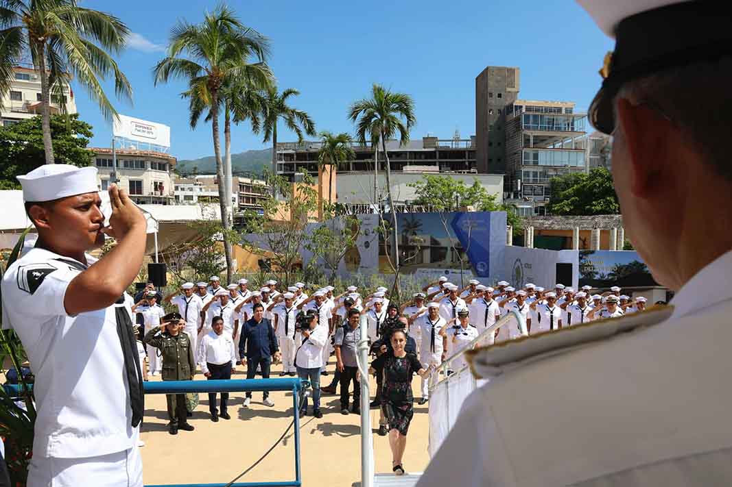 La Comandanta Suprema de las Fuerzas Armadas hizo entrega de la Bandera Nacional al Comandante del Marinabús. Además, realizó la supervisión de la Administración del Sistema Portuario Nacional (ASIPONA) de Acapulco, la cual, anunció, tendrá una rehabilitación del 10 por ciento, mientras que el 90 por ciento no será intervenido.