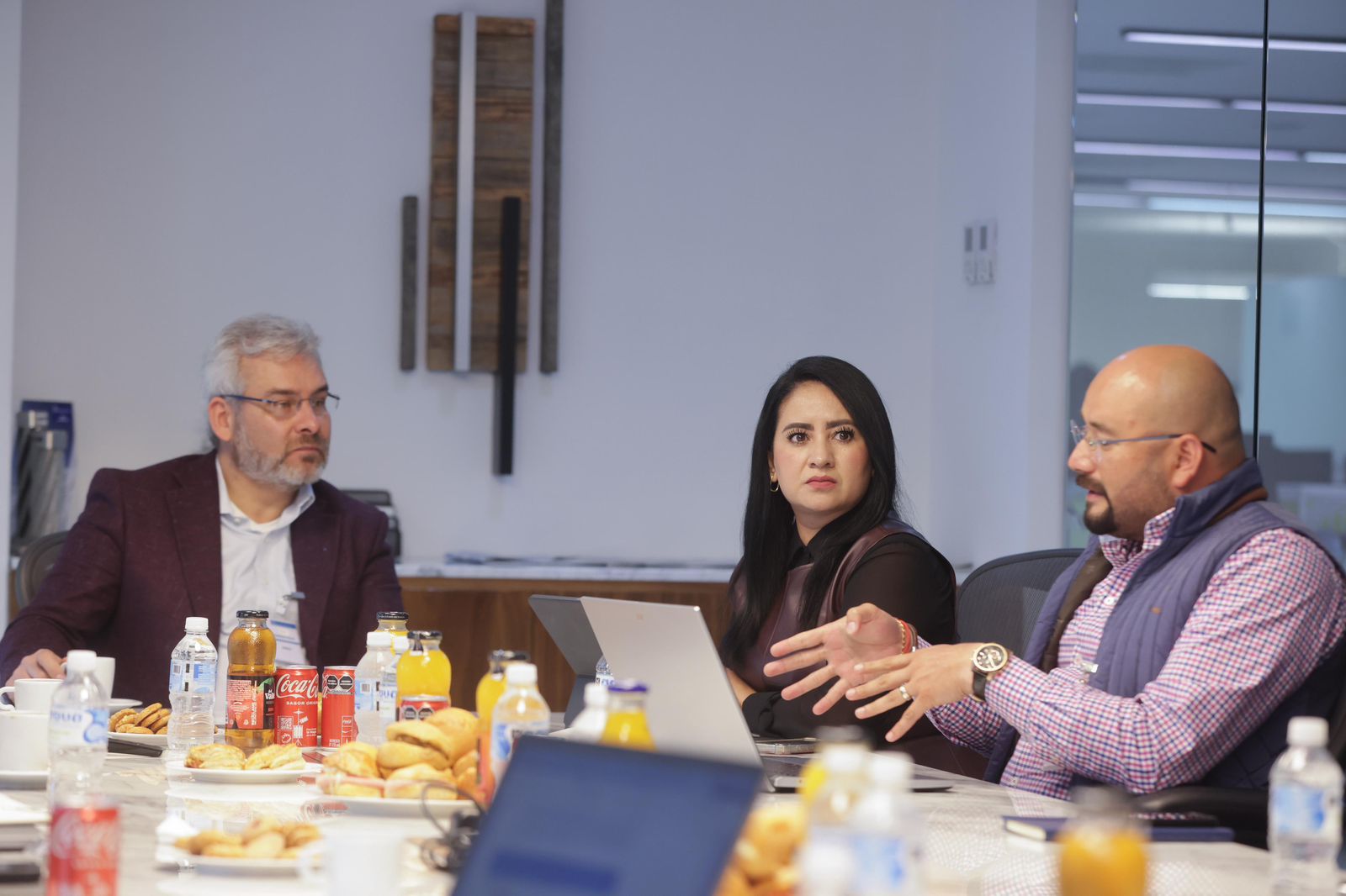 Acompañado de la secretaria de Desarrollo Urbano y Movilidad, Gladyz Butanda Macías, el mandatario encabezó reunión de trabajo para continuar con los trabajos de construcción de la infraestructura que actualmente registra un avance del 87 por ciento en general.