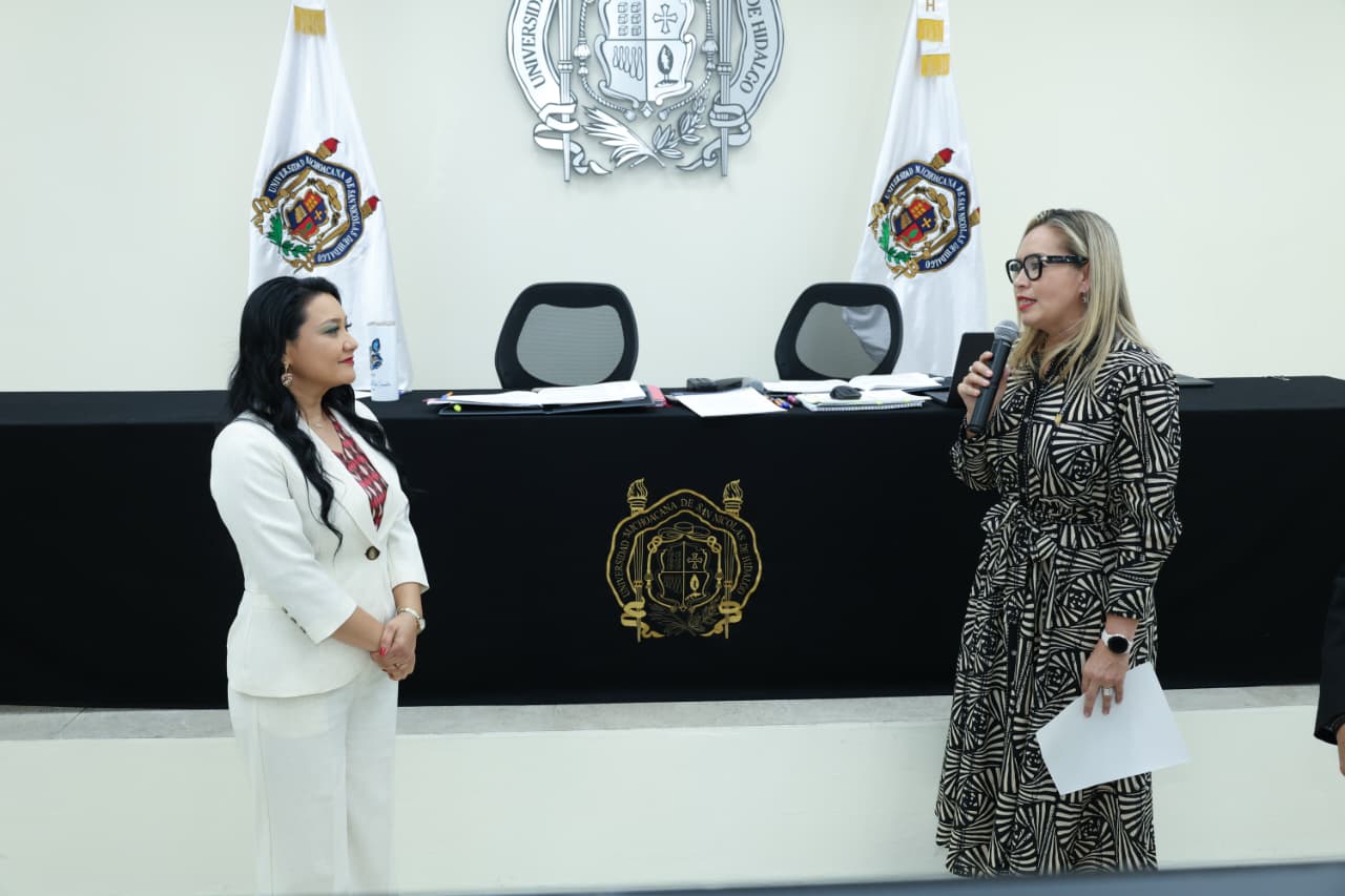 La rectora Yarabí Ávila hizo entrega de su nombramiento y tomó protesta a la funcionaria nicolaita, al tiempo que la felicitó y le dio la bienvenida al máximo órgano de gobierno de la UMSNH. “Trabajaremos todas y todos por el bien de la Universidad, tiene en sus manos una gran Facultad, sabemos que seguirá trabajando para hacerla crecer cada día más en beneficio de las y los estudiantes”, enfatizó.
