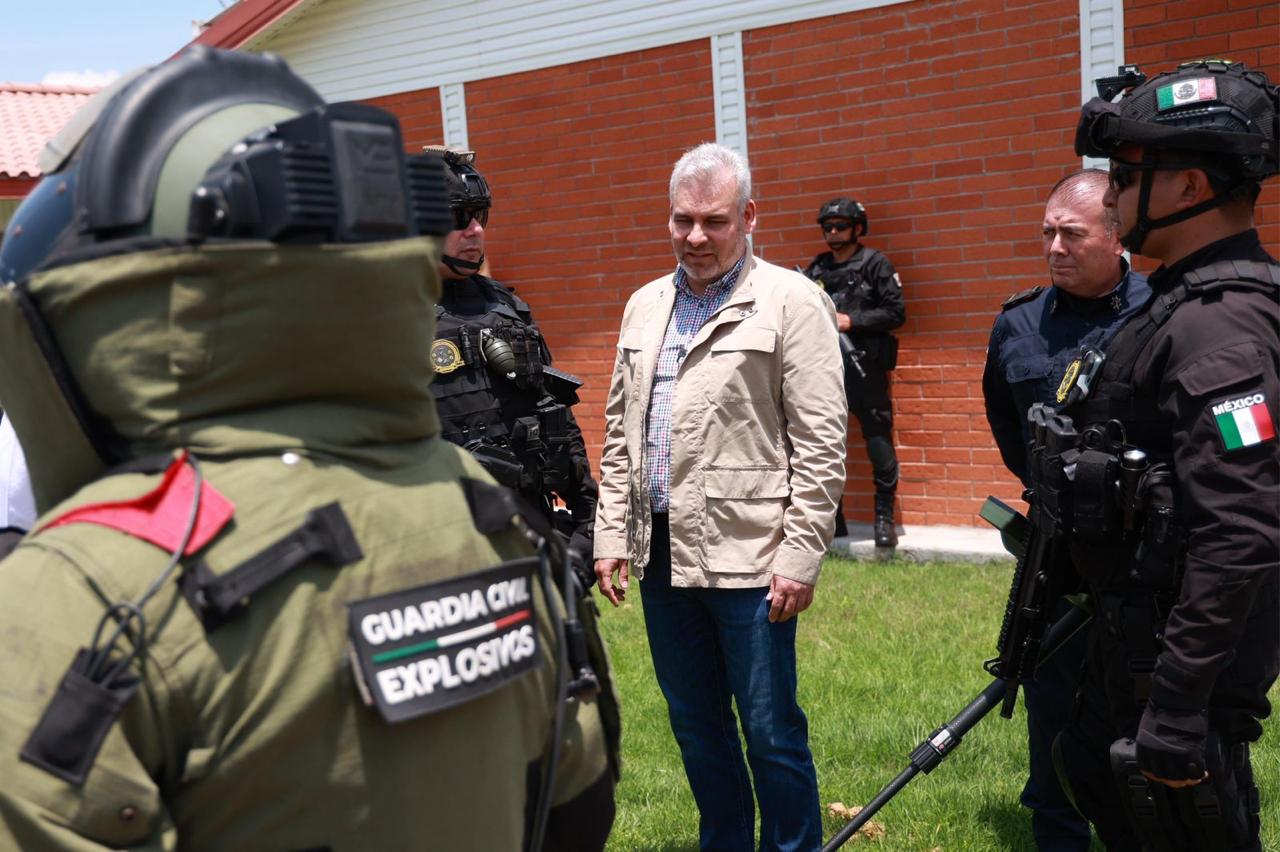 El gobernador Alfredo Ramírez Bedolla verificó el equipo antibombas del Agrupamiento Especializado en Artefactos Explosivos y Materiales Peligrosos de la Guardia Civil, una fuerza de clase mundial, profesional y altamente capacitada para atender emergencias en Michoacán.
