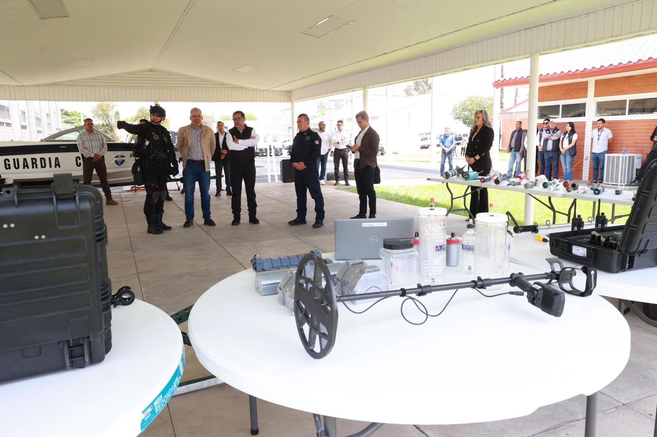 Acompañado por el secretario de Seguridad Pública, Juan Carlos Oseguera Cortés y del capitán del grupo antiexplosivos, Carlos Roberto Gómez Ruiz, el mandatario destacó que el equipamiento fortalece las tareas de detección, extracción y desactivación de artefactos con el propósito de salvaguardar la integridad de la población.