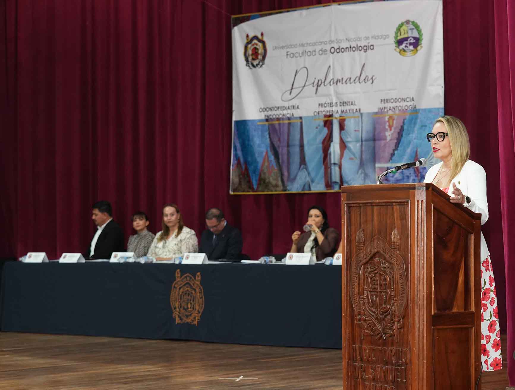 Nicolaitas continúan en la ruta de la excelencia profesional al concluir diplomados de la Facultad de Odontología, actividad a la que asistió la rectora de la Universidad Michoacana de San Nicolás de Hidalgo (UMSNH), Yarabí Ávila González.