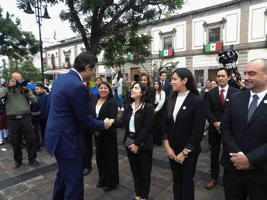 La representación institucional incluyó a la síndica municipal Susan Melisa Vásquez Pérez, el secretario del Ayuntamiento Yankel Alfredo Benítez Silva y el comisario de Policía Morelia, Pablo Alarcón Olmedo. La ceremonia contó con la participación de estudiantes de nivel básico, quienes fueron seleccionados para representar a la niñez y juventud de la ciudad: Jimena Aylin García Ortega, de la Escuela Primaria Michoacán, y Marco Antonio Herrejón López, de la Escuela Primaria David G. Berlanga.
