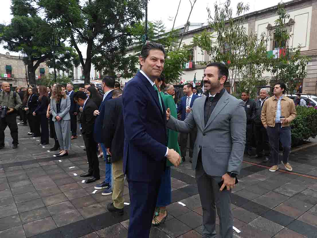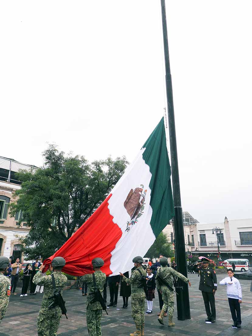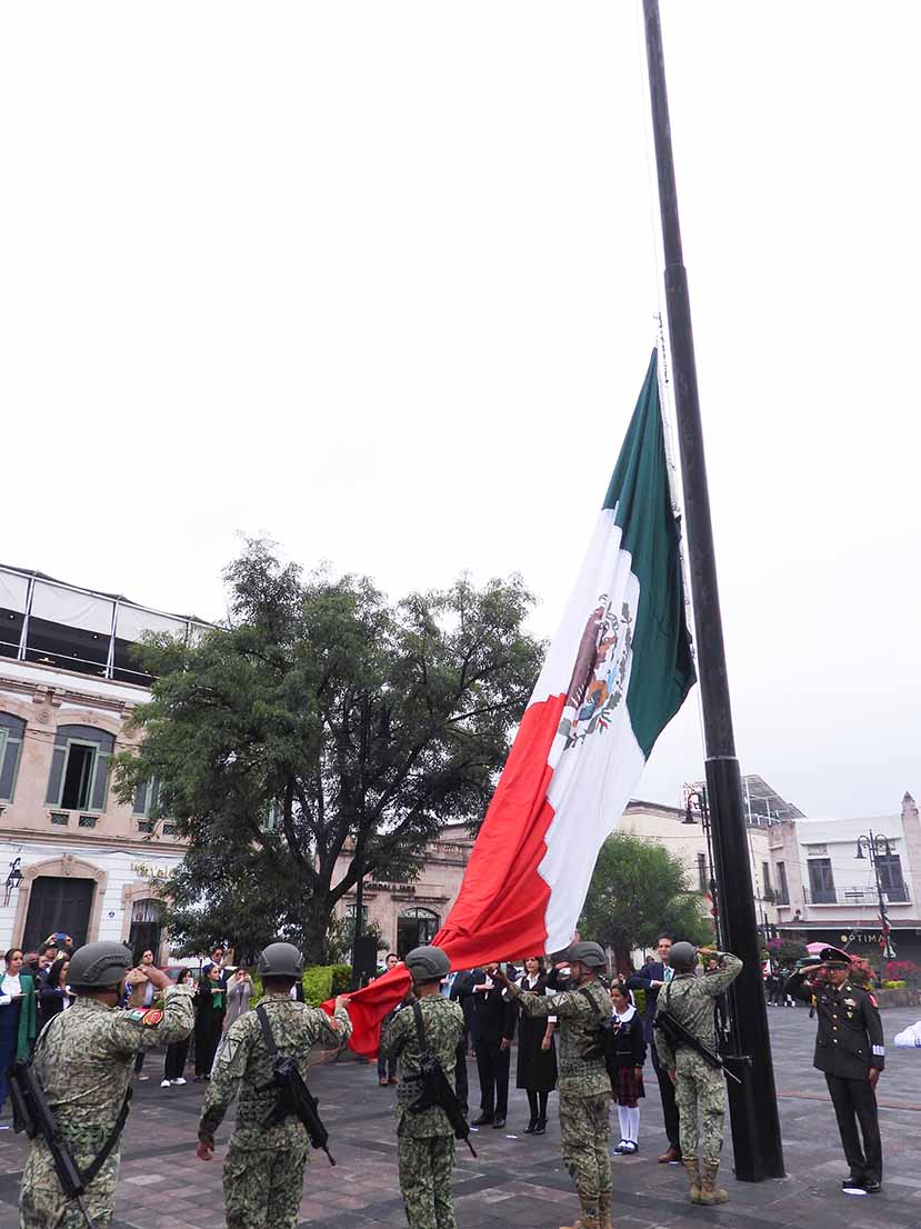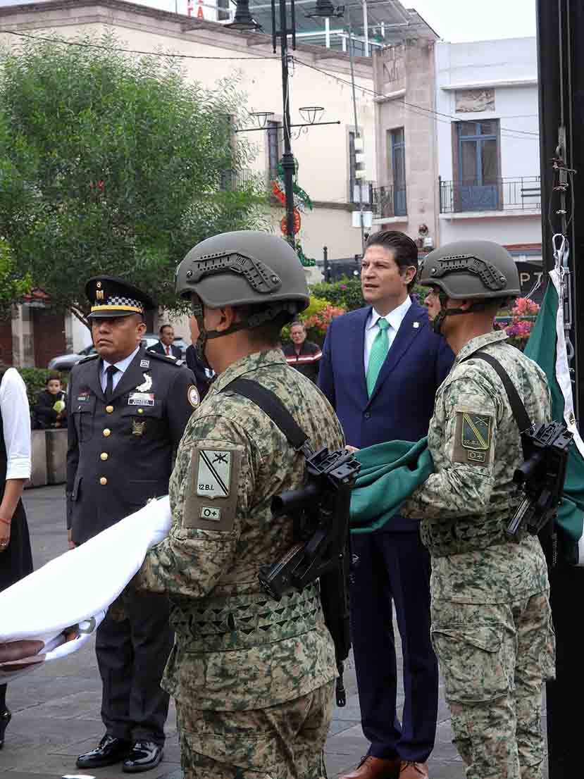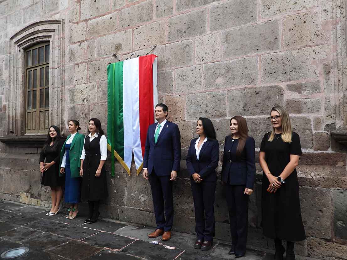 El presidente municipal de Morelia, Alfonso Martínez Alcázar, encabezó el izamiento de la Bandera Nacional en la explanada Melchor Ocampo, acto que marcó el inicio oficial de las celebraciones patrias en la capital michoacana.