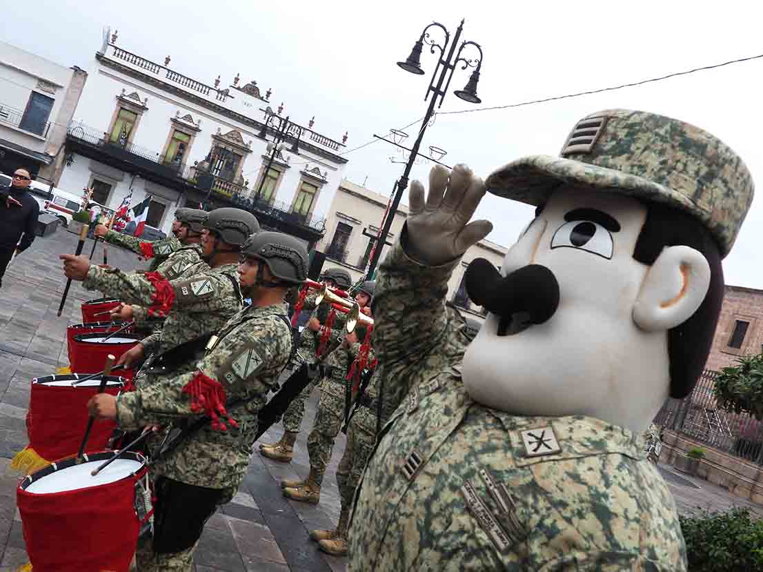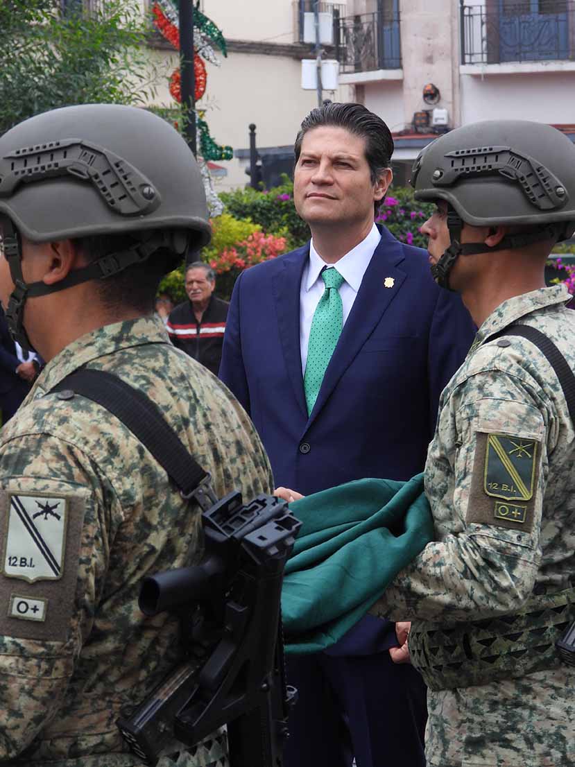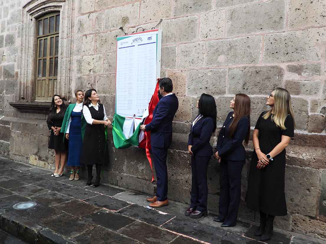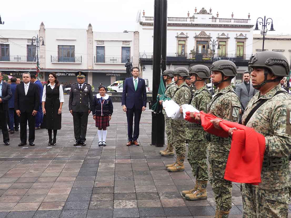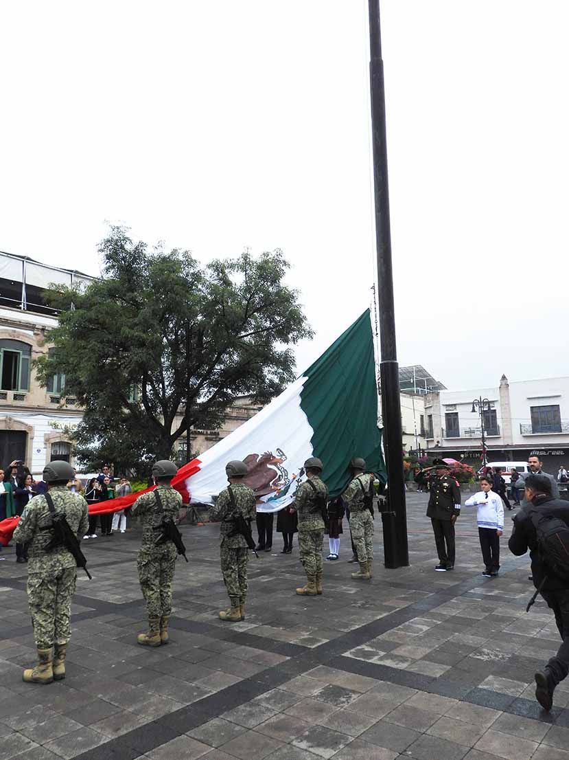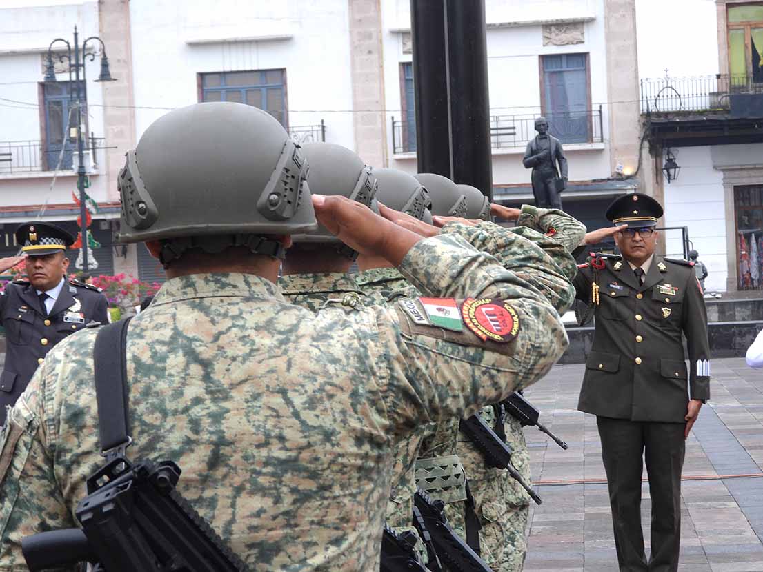 La ceremonia se desarrolló frente a la Catedral de Morelia con la participación de autoridades civiles, militares y educativas. Entre los asistentes se encontraban el Mayor de Infantería de Estado Mayor, José Luis Santos Galicia, en representación de la XXI Zona Militar; el capitán segundo de la Guardia Nacional, David Fuentes Avendaño; y Rubén Pedraza Barrera, subsecretario de Derechos Humanos del Gobierno del Estado. También estuvieron presentes integrantes del Cabildo, del gabinete municipal y del Consejo Ciudadano.