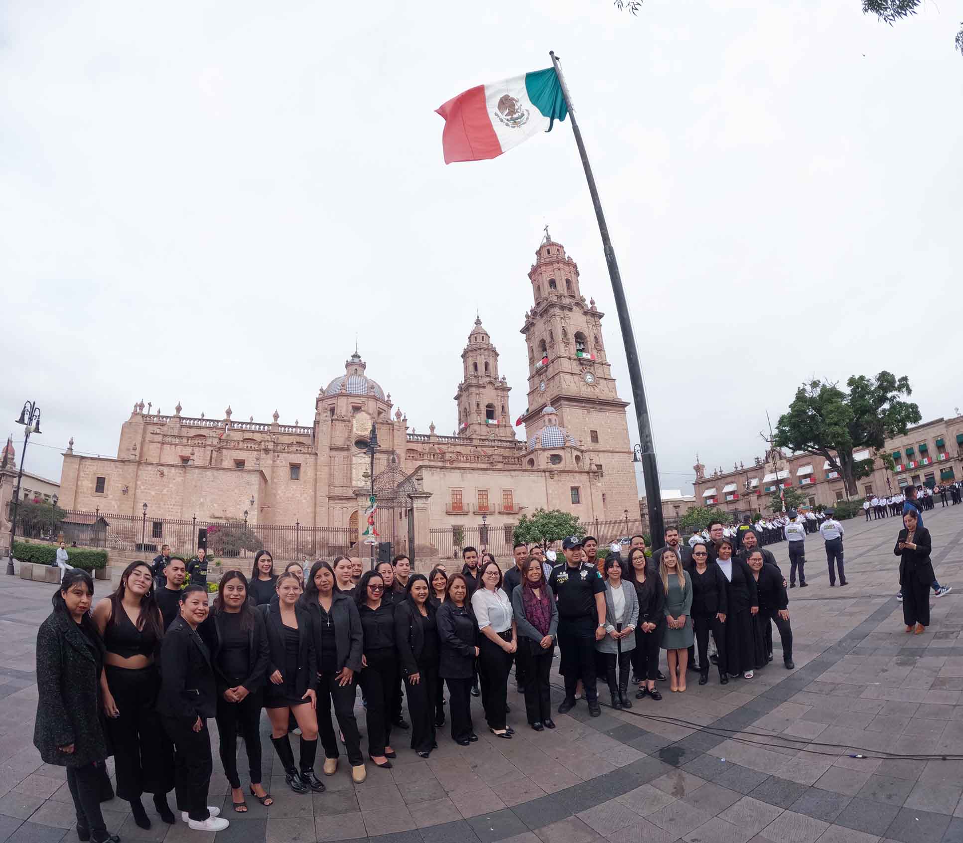 Esa ceremonia se realizó en la Plaza Melchor Ocampo donde la Banda de Guerra de la Policía Morelia fue la encargada de Ahí se leyó una breve semblanza de la vida de La Corregidora, cuyo nombre es María Josefa Crescencia Ortiz Téllez-Girón, quien nació el 8 de septiembre de 1768 en la Ciudad de México.