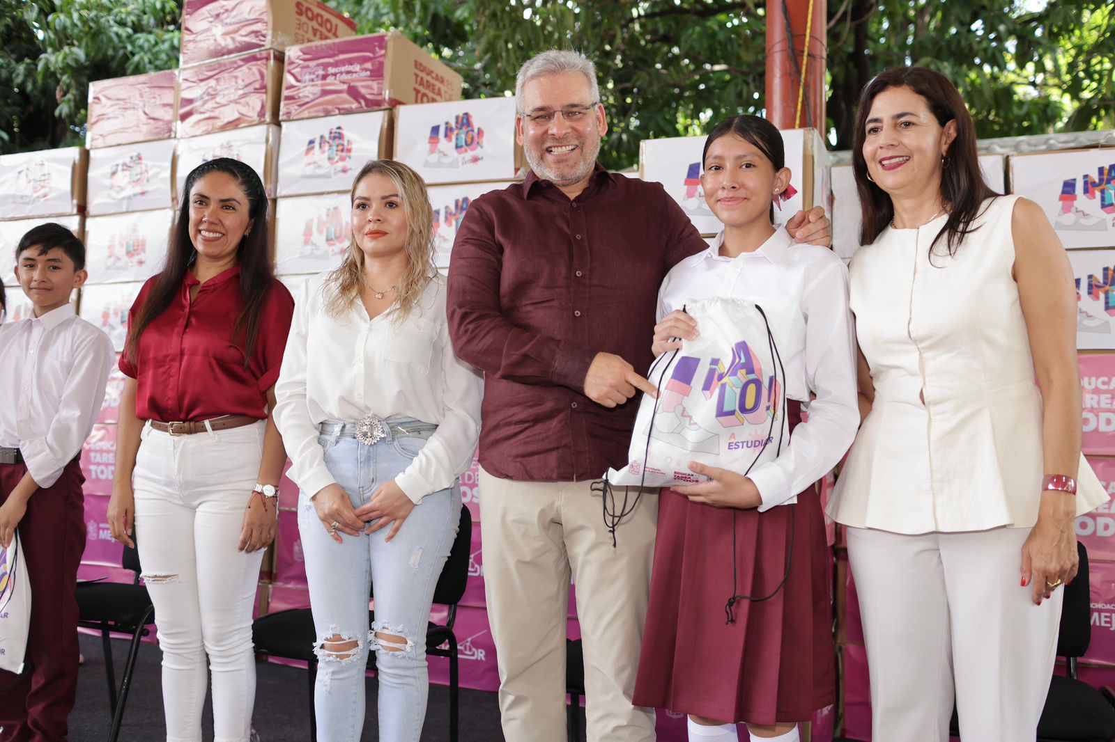 Acompañaron al gobernador el secretario de Comunicaciones y Obras Públicas, Rogelio Zarazúa; la directora del Instituto de Educación Media Superior y Superior, Mariana Sosa; el director del Instituto de la Juventud Michoacana, Lenin López; la presidenta municipal de Apatzingán, Fanny Arreola, así como docentes y estudiantes beneficiados.