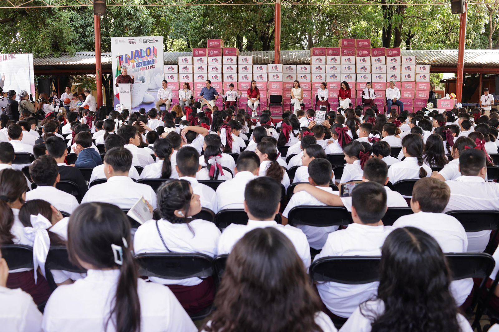 Desde la Escuela Secundaria Técnica No. 5, donde puso en marcha el Programa Jalo a Estudiar, Jalo por la Paz, el mandatario señaló que se trata del tercer año consecutivo en el que el Gobierno estatal dota de calzado de piel a jóvenes de todas las secundarias y telesecundarias, con una inversión de 92.8 millones de pesos.