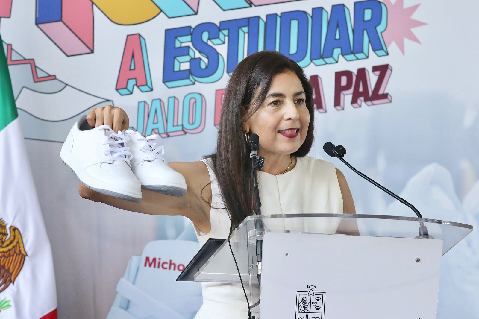 En tanto, la secretaria de Educación del Estado, Gabriela Molina Aguilar, aportó que con esta dotación sumarán más de 600 mil pares de tenis entregados a estudiantes de secundaria en los últimos tres ciclos escolares, que también son historias de vida. “Con sus tenis vamos a patear las adicciones”, manifestó.