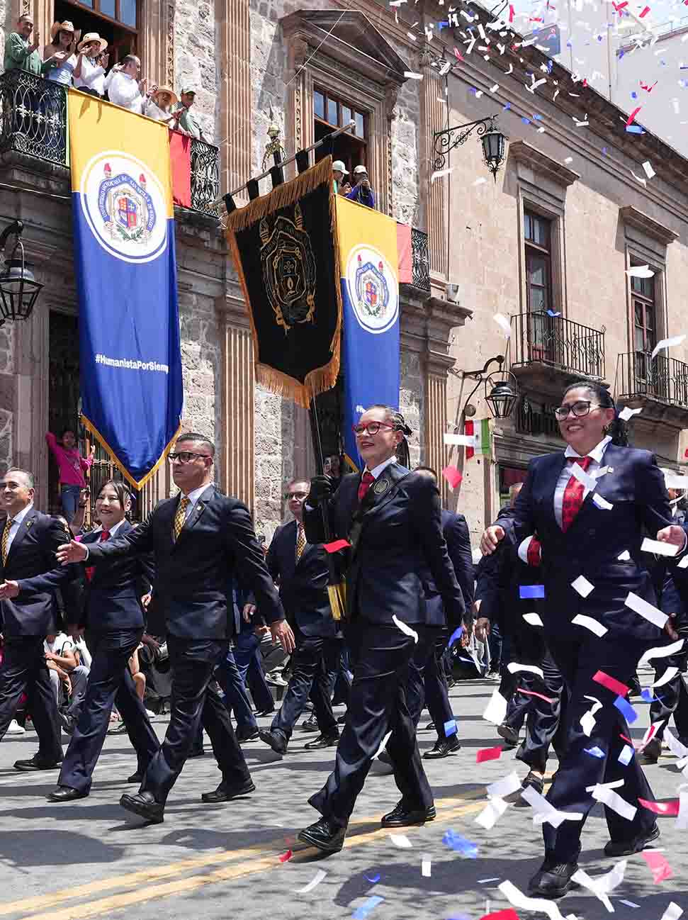 Ante cientos de familias morelianas y de otros puntos de la entidad que se congregaron para presenciar el desfile, la Universidad Michoacana reafirmó su compromiso con los valores del humanismo, el respeto, la honestidad, la inclusión, la igualdad, la fraternidad y la excelencia educativa.