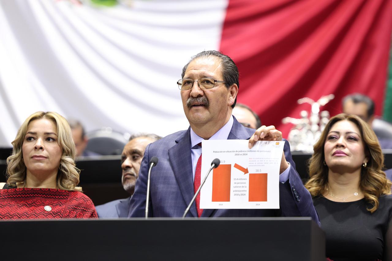 El coordinador del Grupo Parlamentario del Partido del Trabajo (GPPT), diputado Reginaldo Sandoval Flores, afirmó que desde la llegada de la Cuarta Transformación se salido de la pobreza 13.4 millones de mexicanas y mexicanos, lo que demuestra que este modelo de gobierno es todo un éxito.