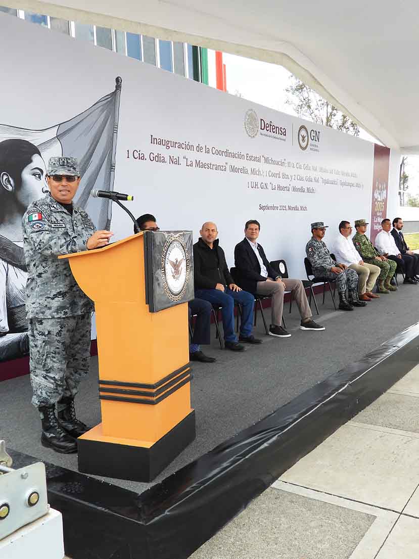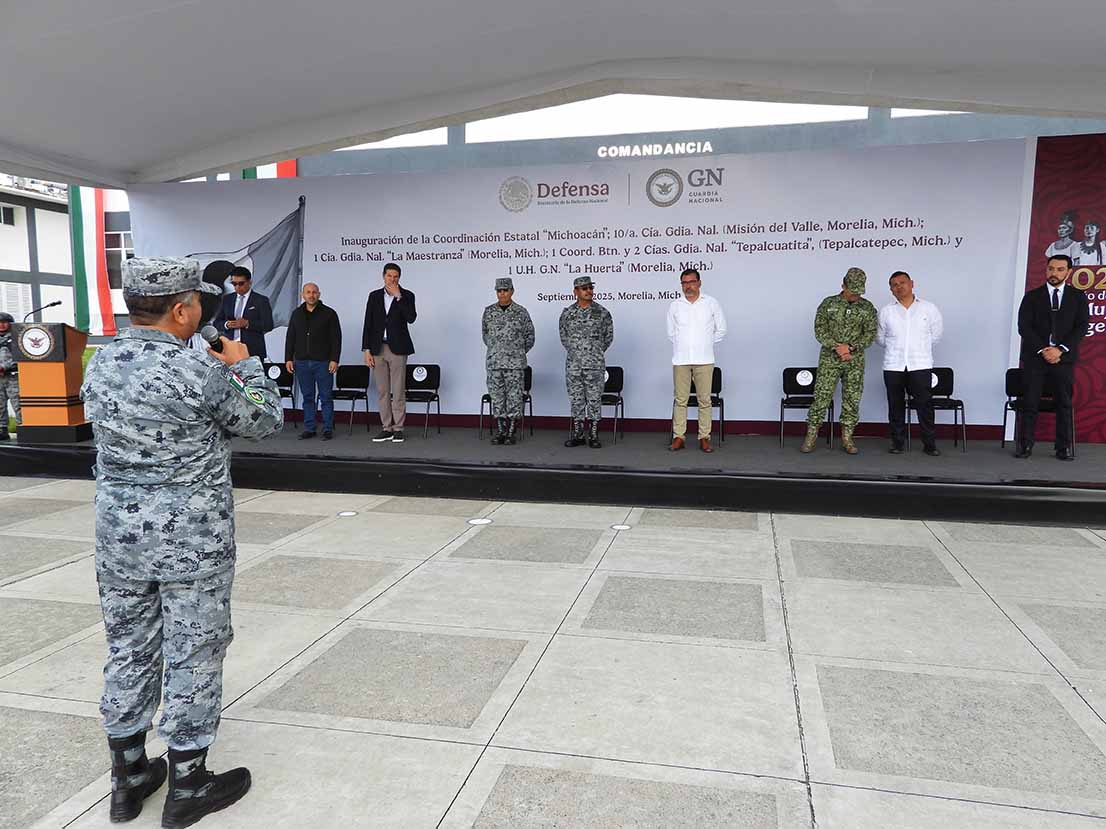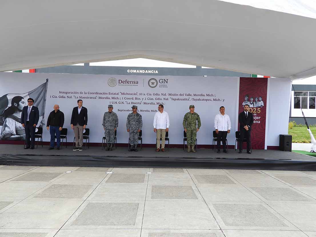 Se llevó a cabo la inauguración de la Coordinación Estatal de la Guardia Nacional en Michoacán, así como la Décima Compañía de la Guardia Nacional Misión del Valle, con lo que se busca fortalecer la capacidad institucional de la institución federal adscrita a la Secretaría de la Defensa Nacional (Defensa).