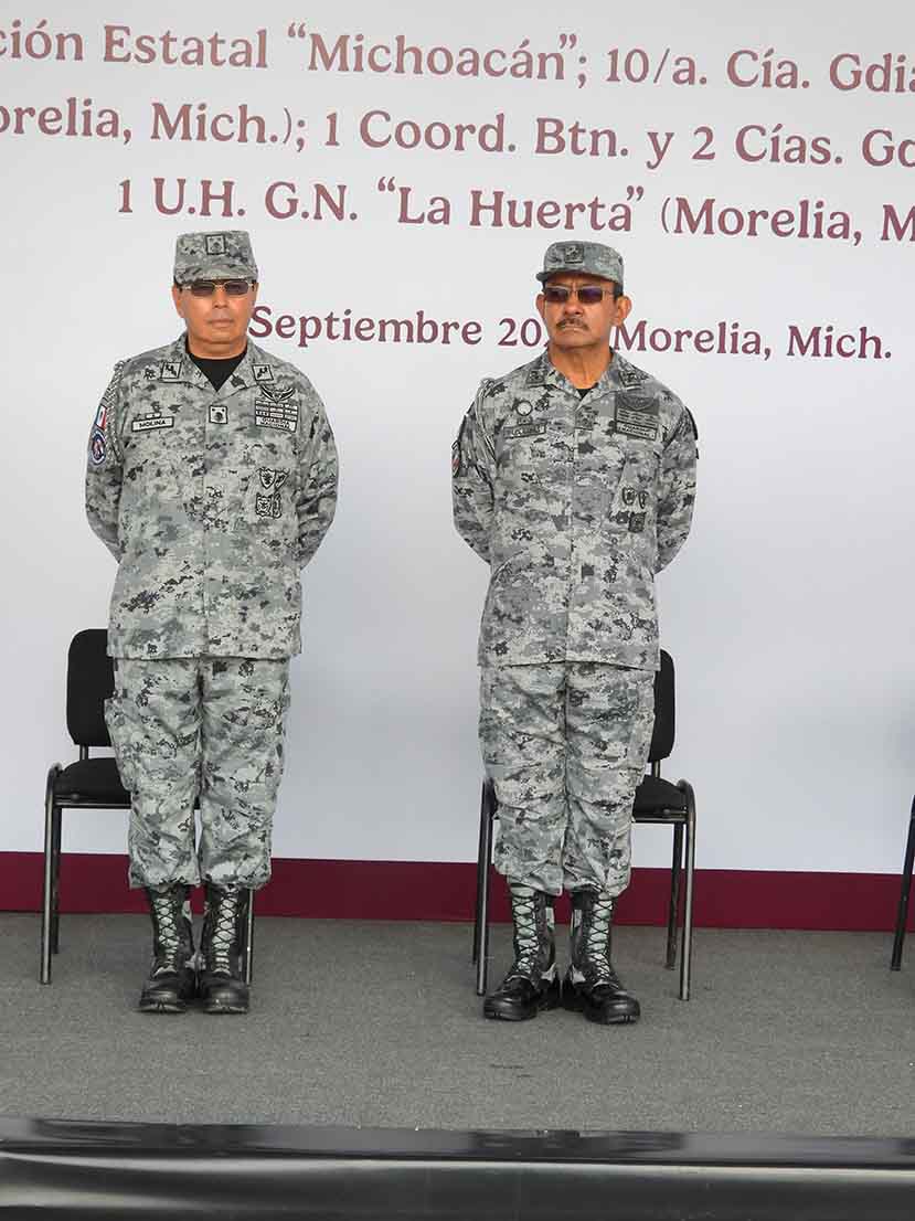 “Es así que estas unidades se suman a nuestra amplia estructura orgánica funcional que cuenta la Guardia Nacional en el prospecto estado de Michoacán, en el que se han construido a la fecha: una coordinación estatal, 3 coordinaciones de batallón y 37 compañías, además de contar con 11 estaciones carreteras ubicadas en puntos estratégicos dentro de esta unidad territorial”.