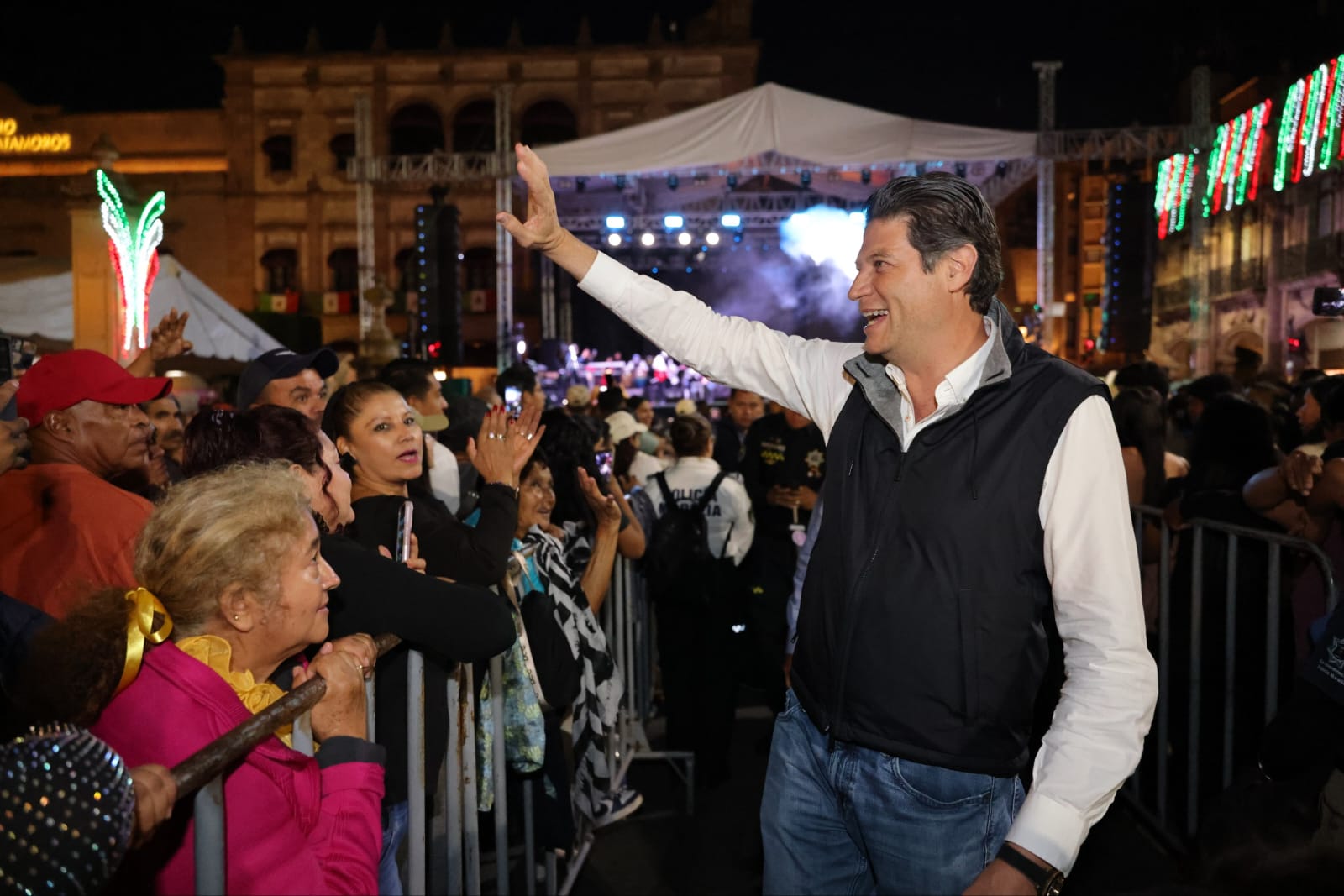 Acompañado por el secretario de Servicios Públicos, Netzahualcóytl Vázquez Vargas y el comisionado, Pablo Alarcón Olmedo, el presidente recorrió el escenario y la zona en donde miles de personas disfrutan del espectáculo musical.