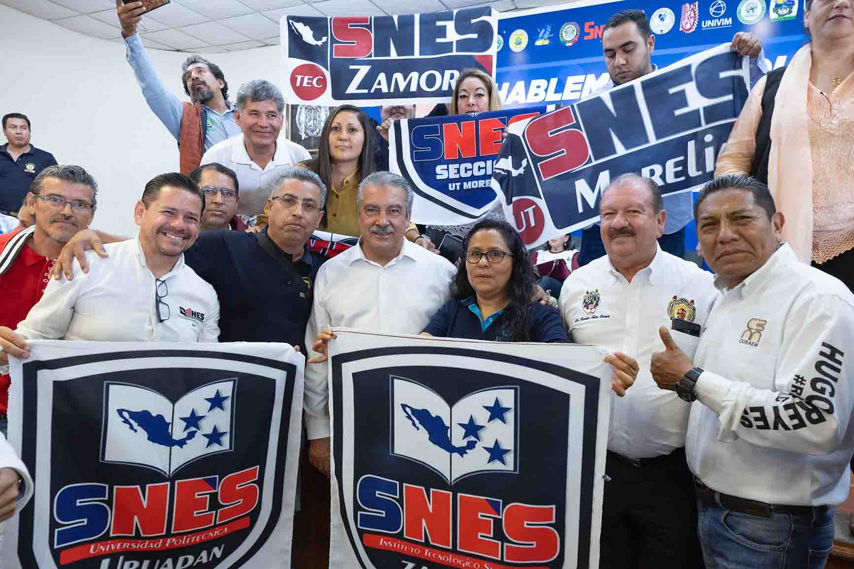 En el evento, Raúl Morón fue enfático al señalar que la unidad es la ruta para que el sector avance en sus principales retos y ofreció todo su apoyo para construir en conjunto, desde su agenda legislativa, soluciones que permitan avanzar en puntos críticos como los derechos laborales, homologación, autonomía de las universidades públicas y una estrategia que disminuya la desafiliación escolar.