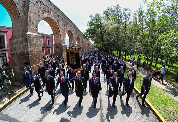 Las representaciones de las diferentes escuelas, facultades e institutos, se hicieron presentes a paso firme con sus estandartes y banderines para conmemorar el natalicio del “Siervo de la Nación”, una de las figuras centrales de la historia de México y de la Máxima Casa de Estudios del Estado.