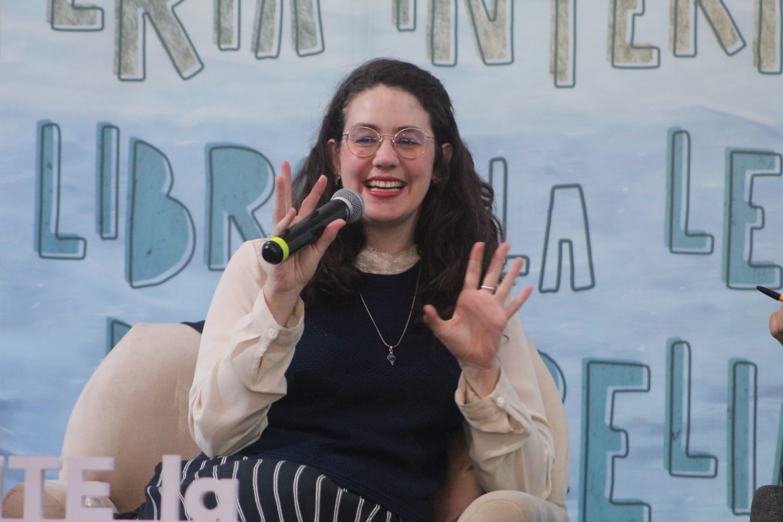 Acompañada por los autores Jorge Comensal y Víctor Solorio, la joven escritora encabezó una amena charla sobre la amistad, el amor, la nostalgia, y otras emociones que surgen de su nueva novela publicada por Random House.